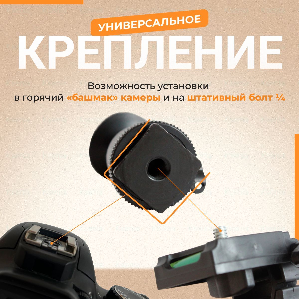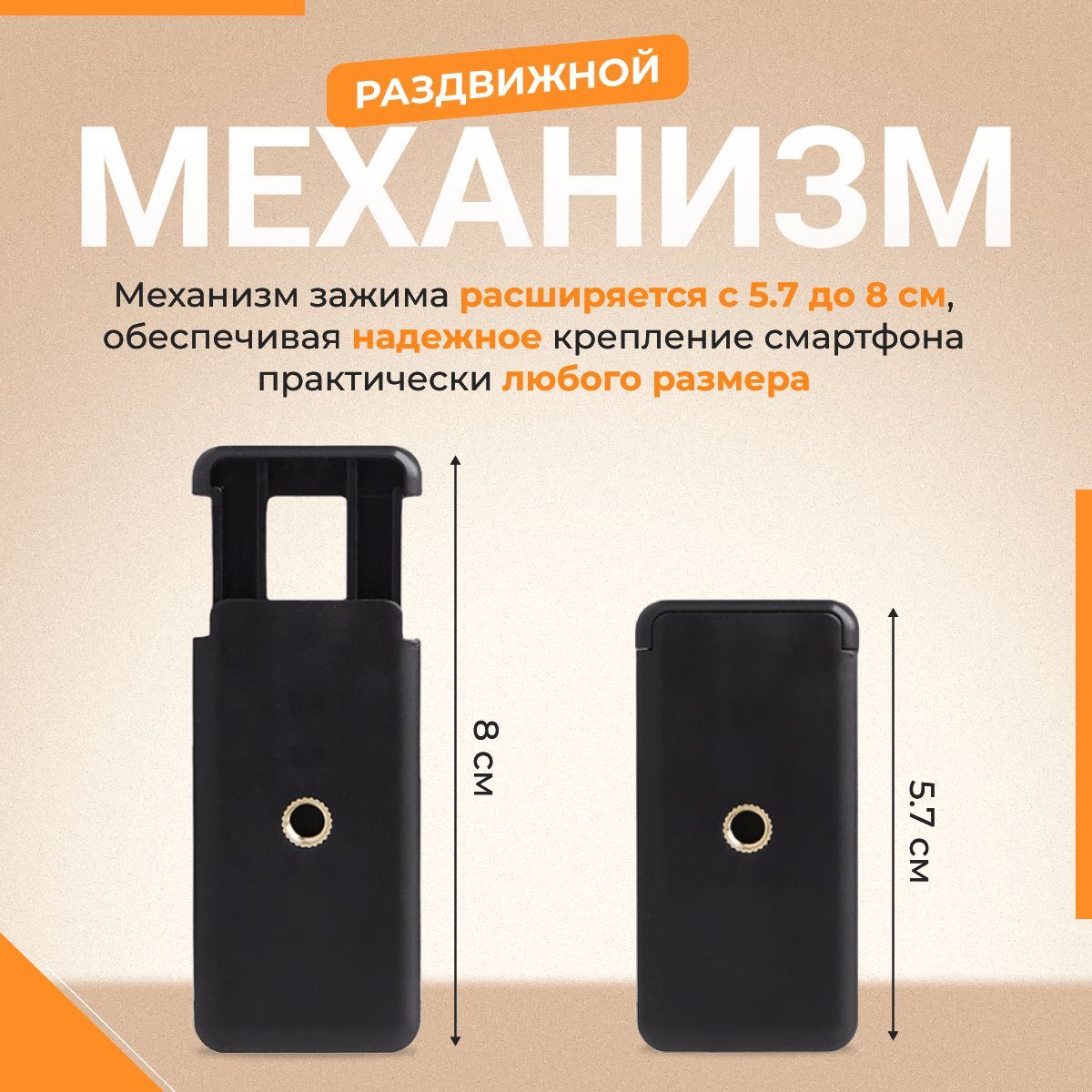 Универсальность: крепление подходит для большинства смартфонов, а также совместимо с зеркальными фотоаппаратами различных брендов, таких как Sony, Nikon, Canon, Olympus, Panasonic, Fujifilm.