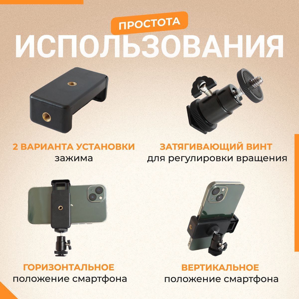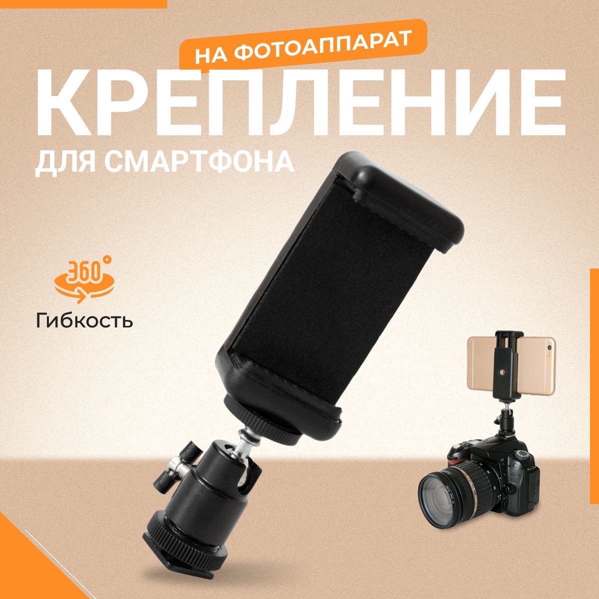 Удобство использования: крепление легко крепится на фотоаппарат и обеспечивает надежное крепление смартфона.