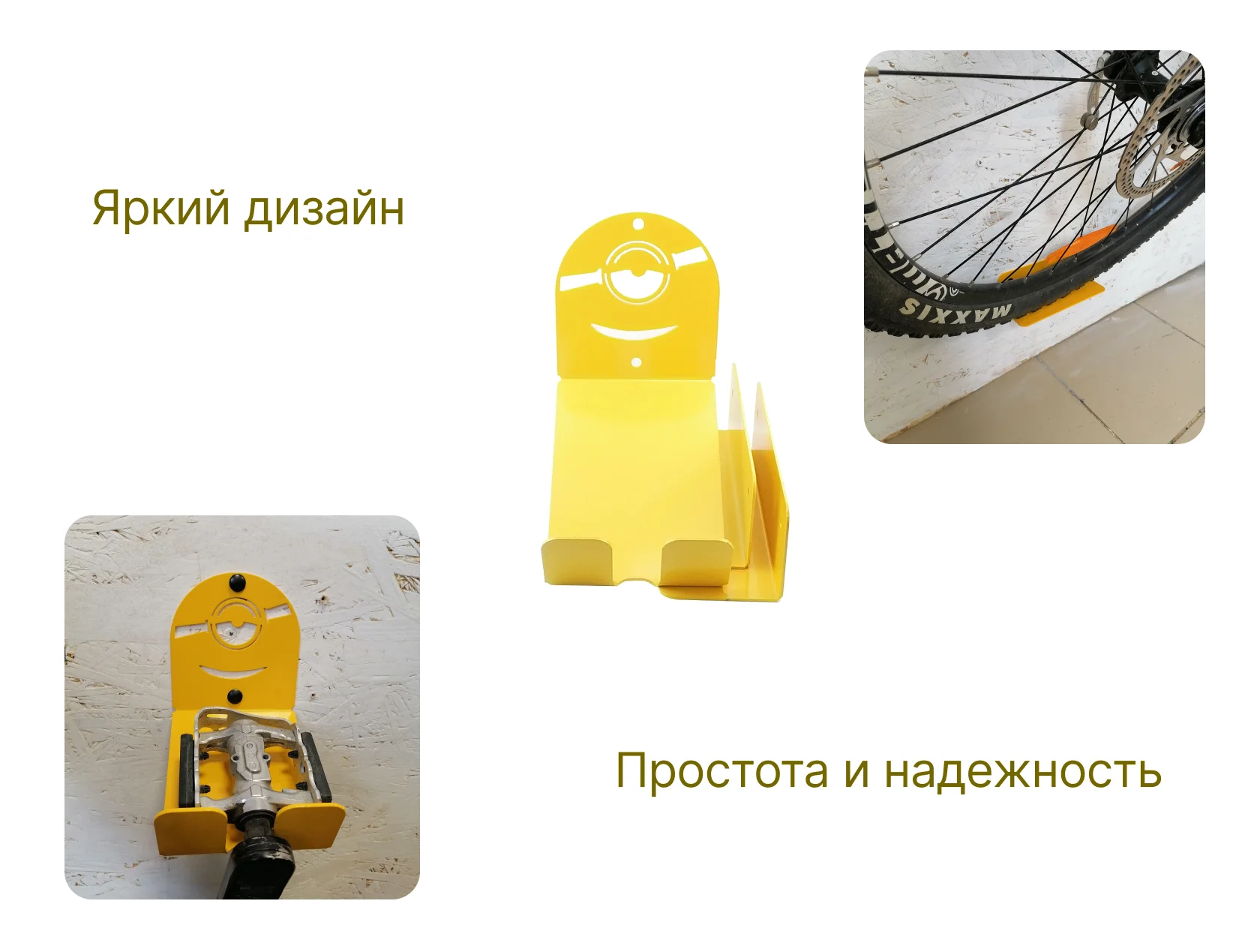 Крепление для велосипеда на стену за педаль. МИНИОН. Металл. Цвет желтый. Сделано в России