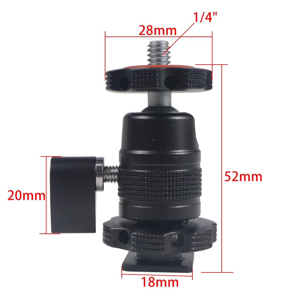 Это шаровая Головка штатива и сиденье для холодной обуви. Легко переключаться между интерфейсом 1/4 и интерфейсом холодной обуви.
