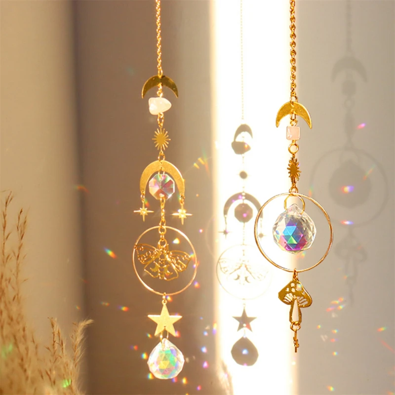 Кристаллы, колокольчики ветра, подвеска в виде золотой бабочки, искусственное витражное украшение, чакры, Ремесла, Декор для дома и сада