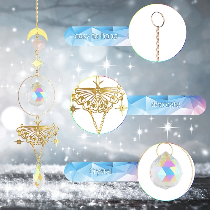 2. Дизайн: Ловец Солнца призмы бабочки, хрустальный кулон отражает красочность светильник, делая весь кулон с перезвоном ветра более красивым и очаровательным.