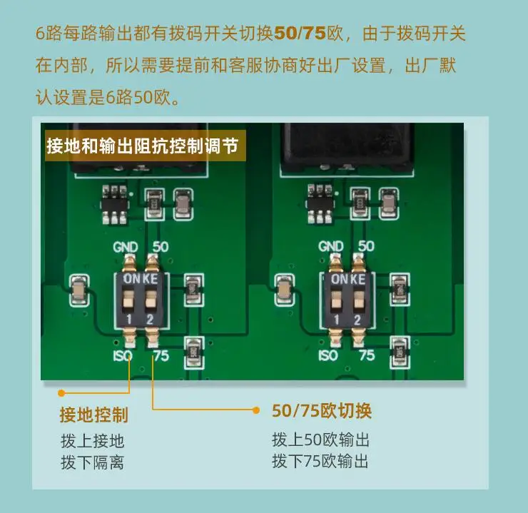 Импеданс каждого выходного интерфейса 50 Ом/75 Ом переключается отдельно