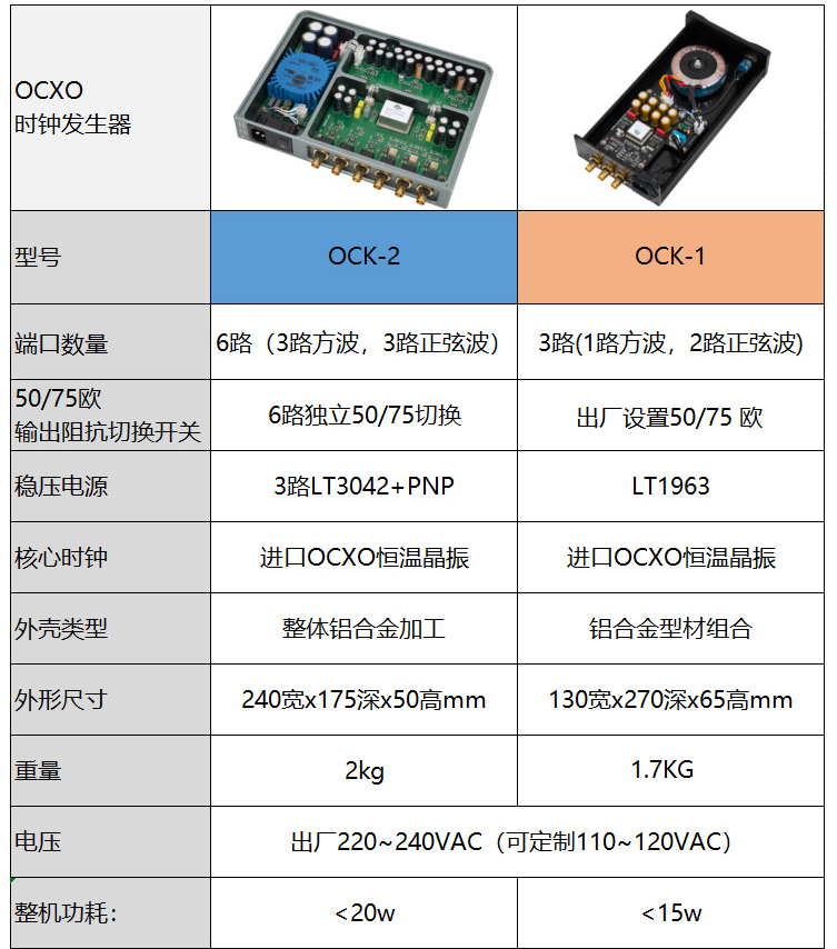 Все цифровые аудиоустройства, включая Сетевые плееры, должны полагаться на часы при выполнении цифрового/аналогового преобразования. Таким образом, качество часов тесно связано с качеством звука. Основные часы с чрезвычайно низким соседним фазовым шумом являются ключом к получению низкой временной базовой ошибки. Производительность внешних часов, предоставляемых OCK-2, намного лучше, чем у обычных встроенных часов.