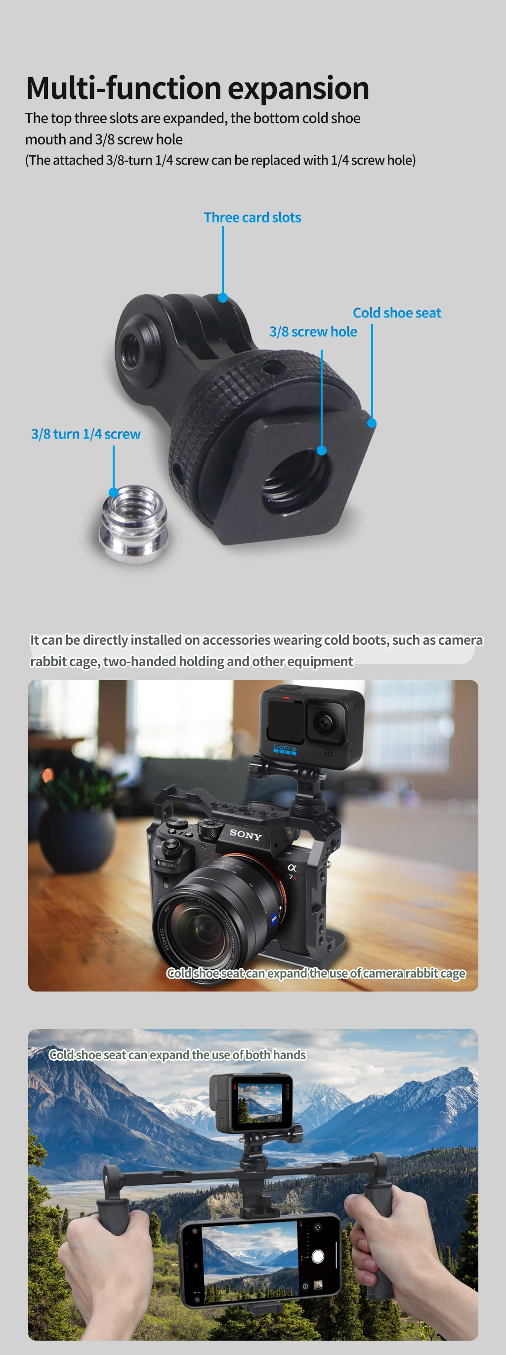 Используется в качестве разъема для экшн-камер GoPro, мониторов, светодиодных видеоламп, микрофонов, клеток камер и т. Д.