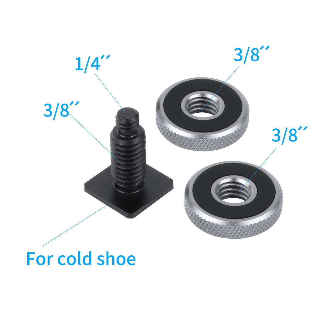 Нижнее отверстие холодного башмака с резьбовым отверстием 3/8 дюйма и прикрепленным винтовым преобразователем с 3/8 дюйма на 1/4 дюйма можно заменить отверстием для винта 1/4)