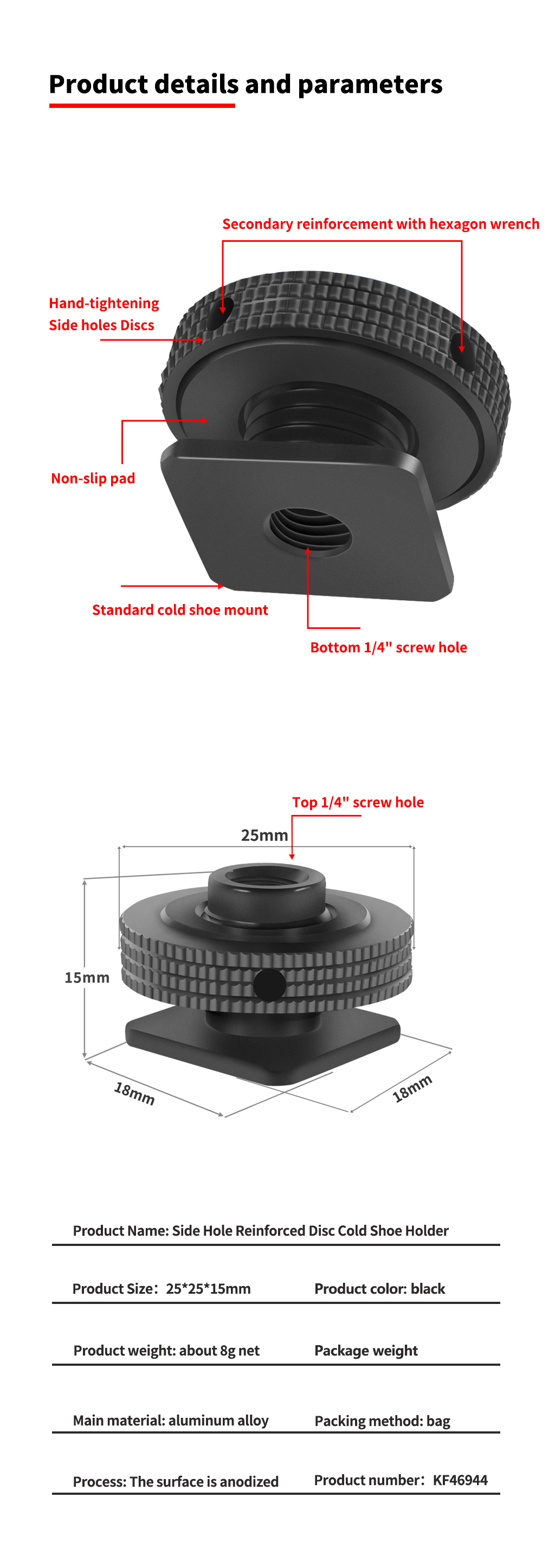 3. Универсальный однослойный держатель для холодной обуви, который можно установить на клетку камеры и камеры с холодной обувью;
