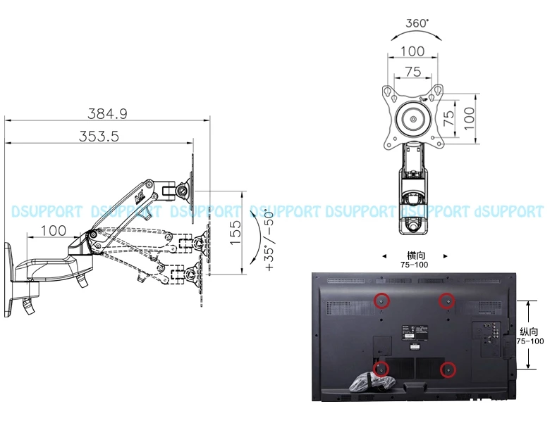 monitor arm gas spring tv wall mount