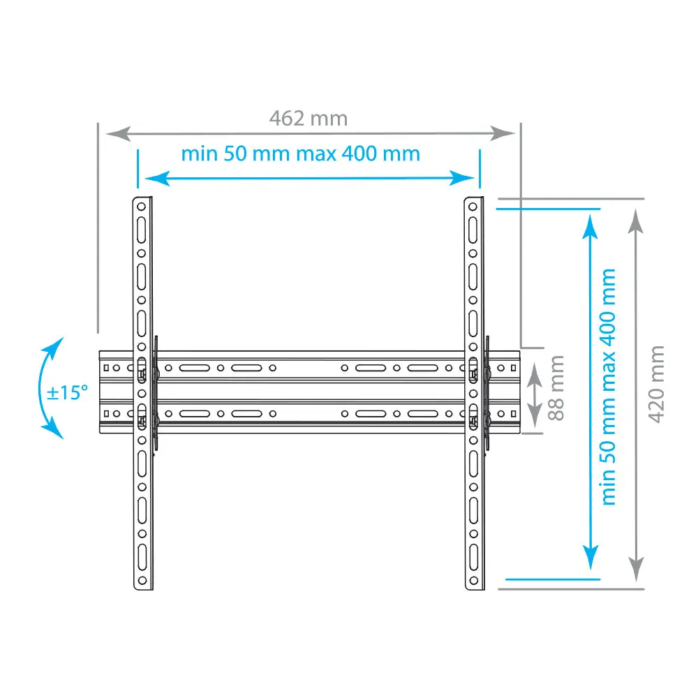 Максимальные посадочные отверстия по горизонтали - 400 мм, по вертикали - 400 мм. Поддерживаемые стандарты VESA: 50 х 50, 75 х 75 , 100 х 100, 200 х 100, 200 х 200, 300 х 200, 300 х 300, 400 х 200, 400 х 300, 400 х 400.