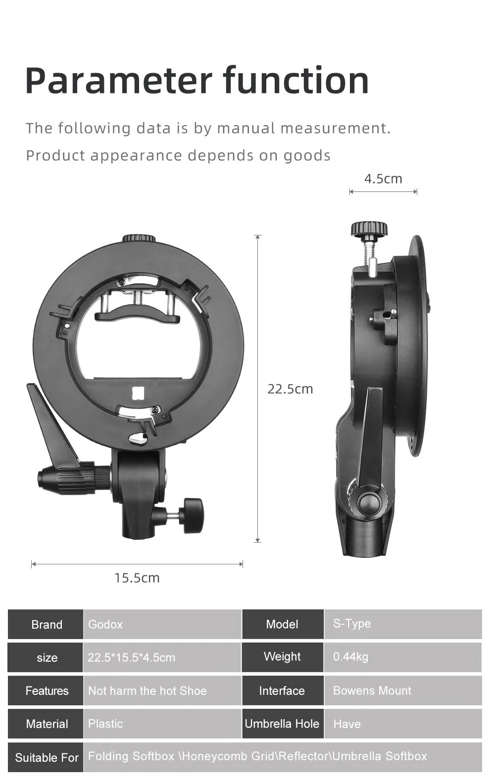 Кронштейн S-типа Godox Bowens S, держатель для вспышки Speedlite, софтбокса, тарелки для красоты, соты