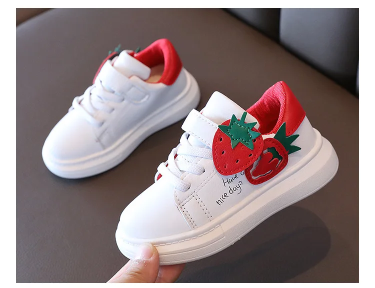 Кроссовки детские для тенниса, повседневная спортивная дышащая обувь с клубничным принтом, белые, для улицы, для мальчиков и девочек, весна-лето