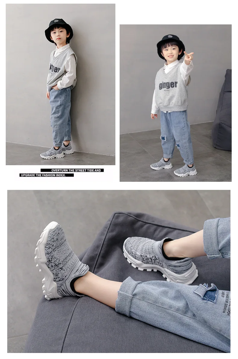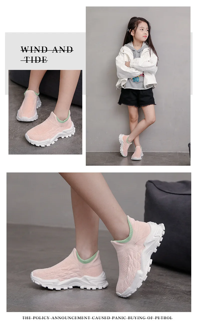 Кроссовки Детские сетчатые для бега, легкие вязаные, Нескользящие, повседневная спортивная обувь для мальчиков и девочек, черные, весна-лето