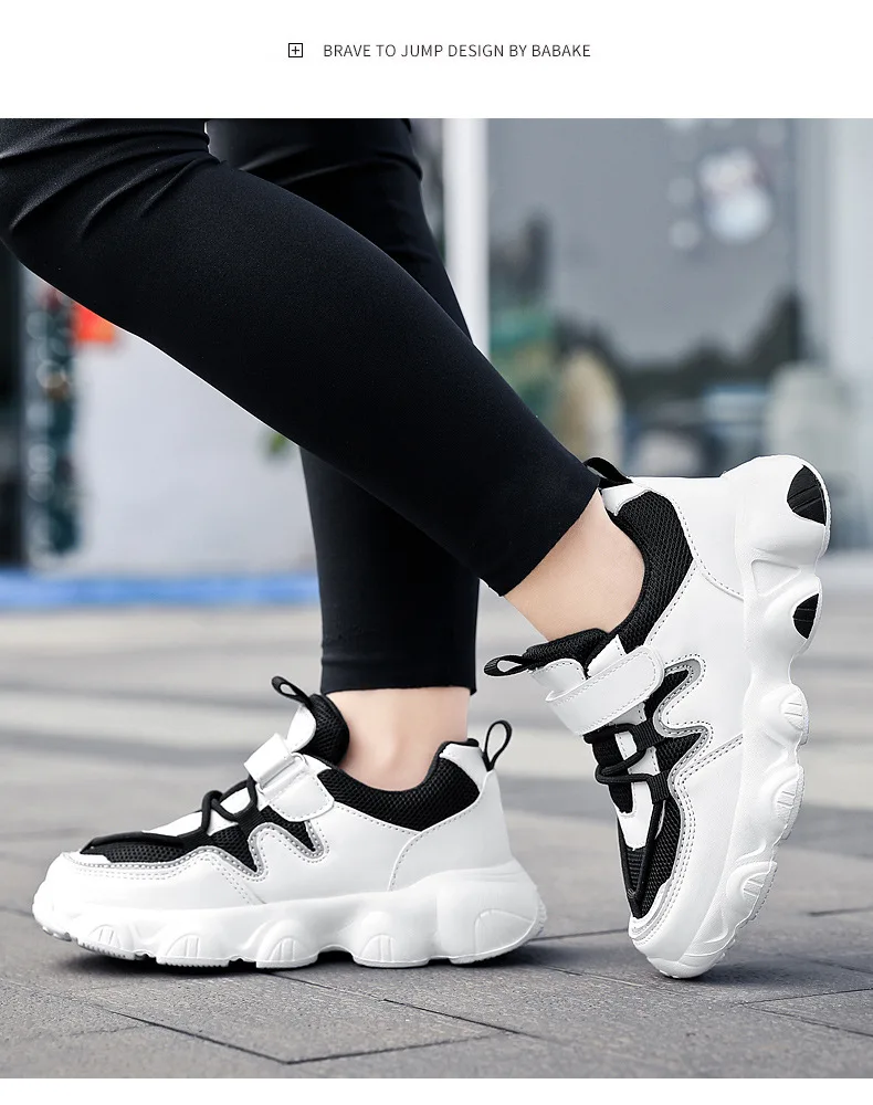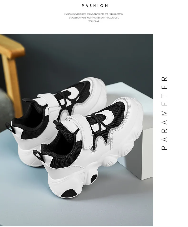 Кроссовки для мальчиков и девочек, Повседневная дышащая сетчатая обувь, мягкая подошва, белые, черные, на весну