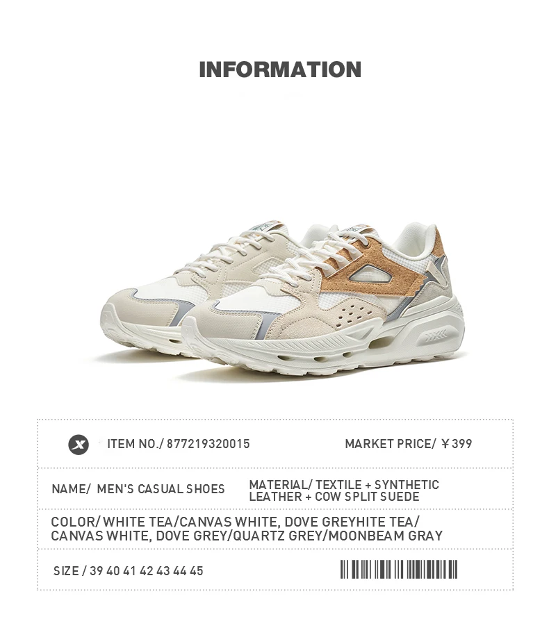 Кроссовки Xtep мужские прогулочные, удобная дышащая спортивная обувь, на толстой подошве, повседневные модные, 877219320015