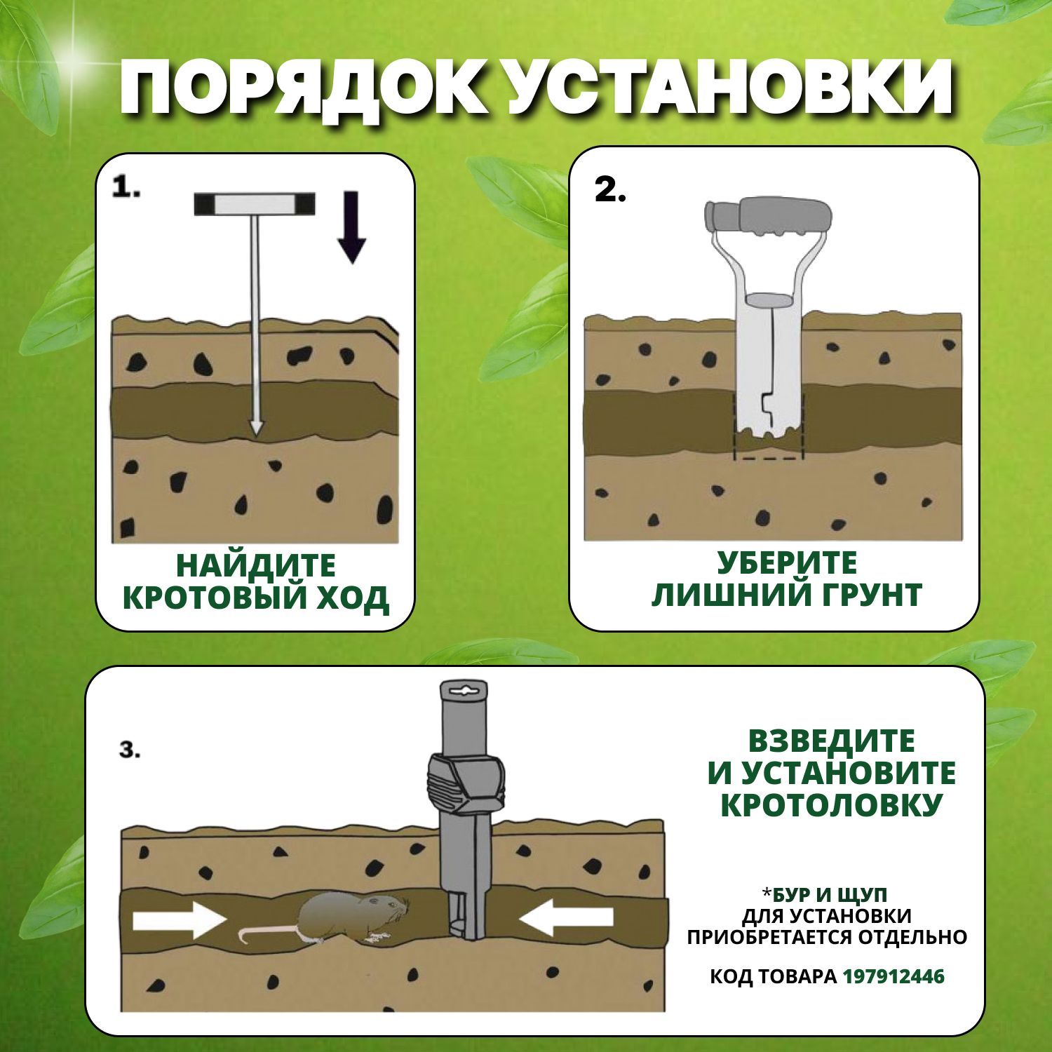 • быстрая установка — нужно найти ход животного, сделать ножом ямку, низ устройства опустить в отверстие и поднять ручку;