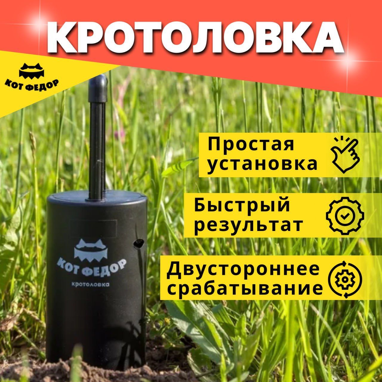 Описание: Ловушка «Кот Федор» вобрала в себя все достоинства кротоловок данного типа:
