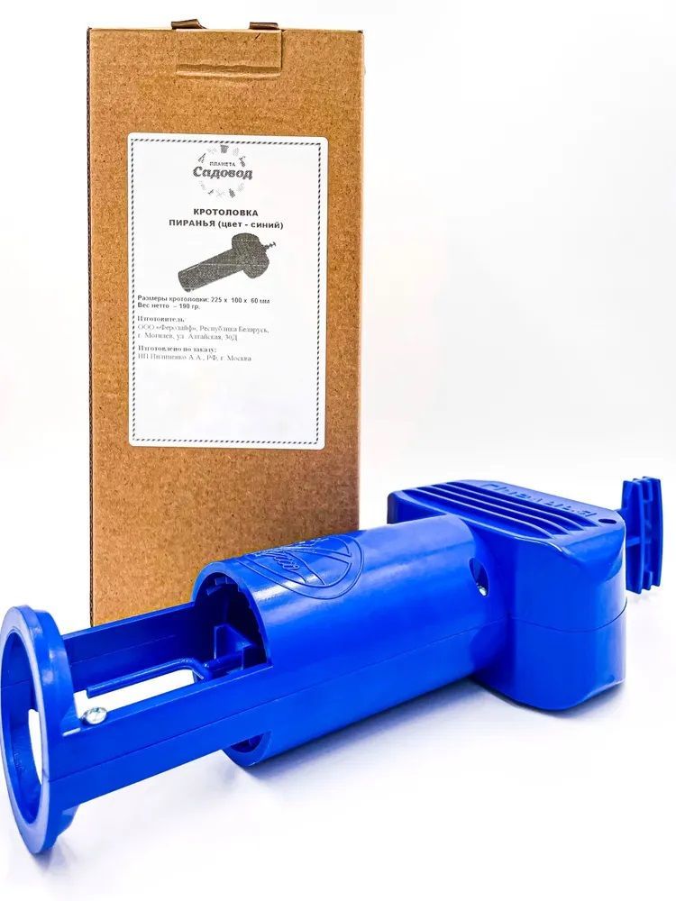 Описание: кротоловка пираньяОписаниеКротоловка Синяя Пиранья для уничтожения кротов, землероек и мышей-полевок.ловушка для кротовОсобенности работыНайдите активный ход крота, сделайте вертикальную лунку для установки кротоловки.
