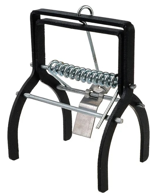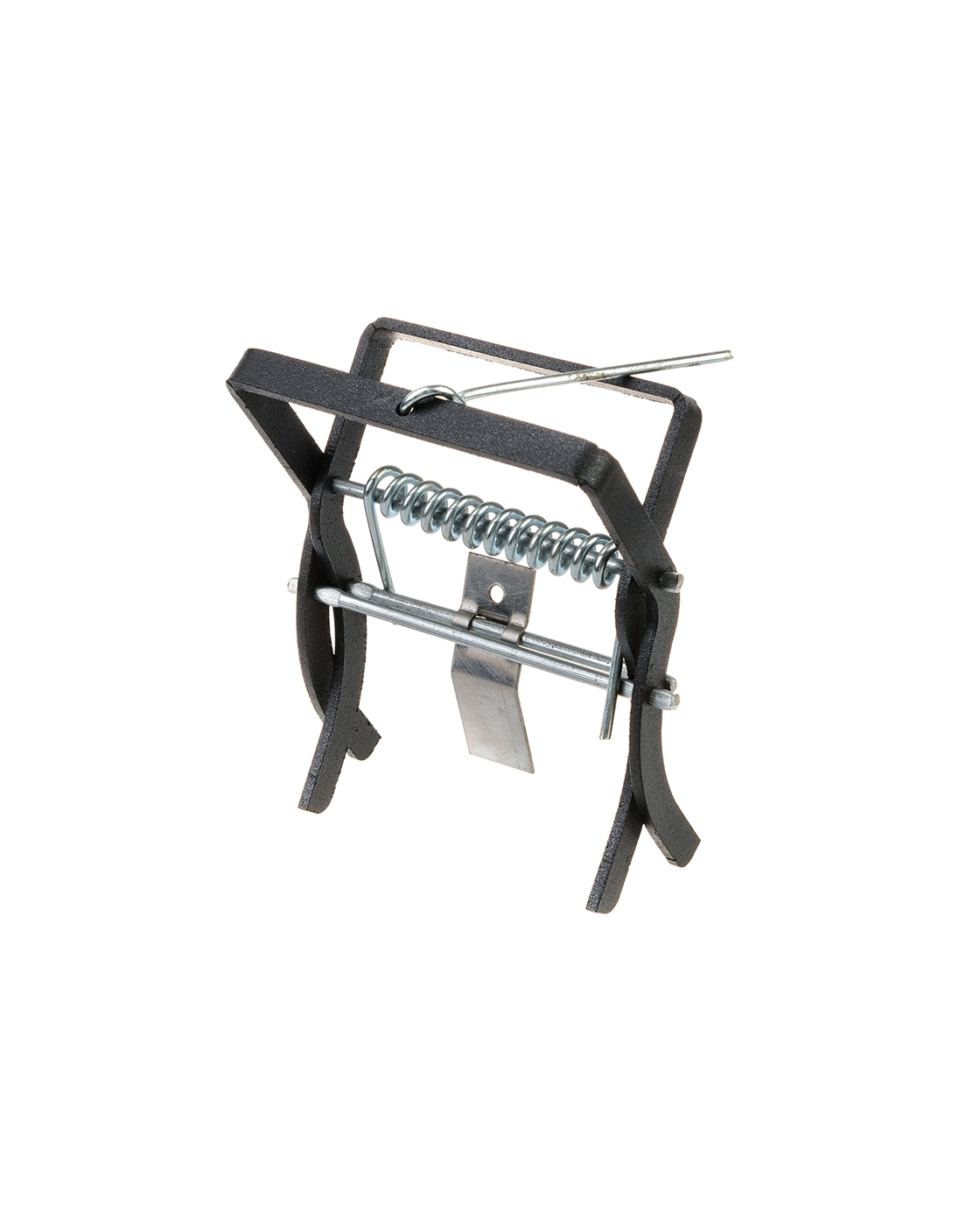 • Взведите кротоловку Спрут 2023: сожмите верхние части капкана вместе, преодолевая сопротивление пружины (удобнее всего это делать, нажав ногой на рычаг кротоловки, лежащей на земле). Зафиксируйте конец сторожка, вставив его в отверстие на пластине (на самый кончик, не более 1 мм, чтобы при небольшом усилии на пластину сторожок соскочил из отверстия и капкан сработал).