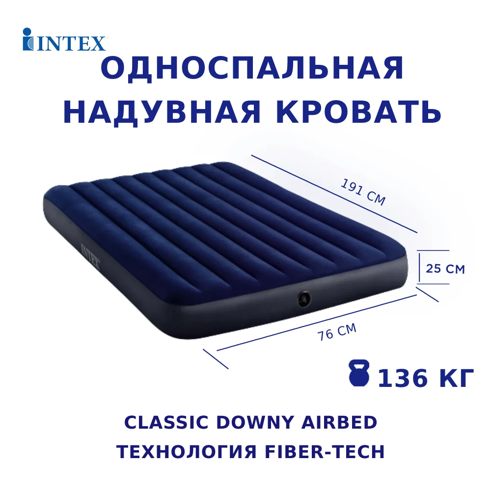 Кровать INTEX надувная односпальная 191х76х25 см, матрас для сна