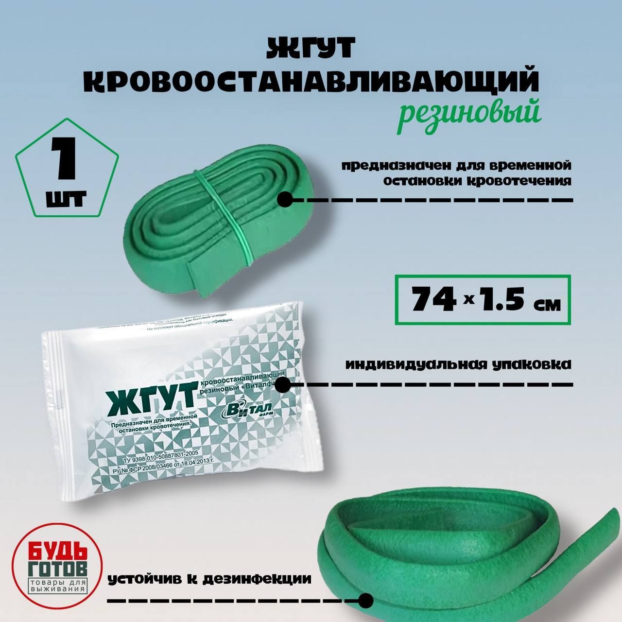 кровоостанавливающий жгут турникет Виталфарм в тактическую аптечку 69х1,5