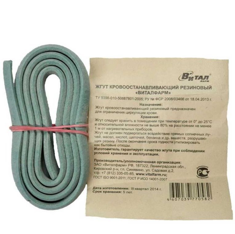 Жгут не должен подвергаться воздействию прямых солнечных лучей, масел, кислот, щелочей, бензина и др. веществ разрушающих резину. После окончания срок годности утилизировать как бытовые отходы.