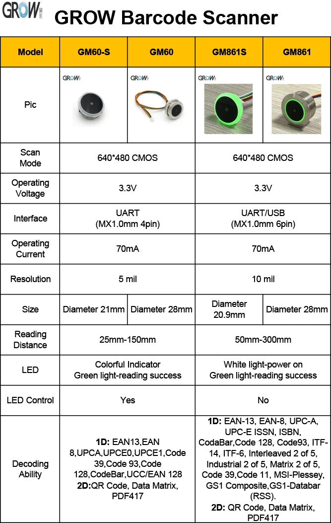 1D: EAN-13, EAN-8, UPC-A, UPC-EISSN, ISBN, CodaBar,Code 128,