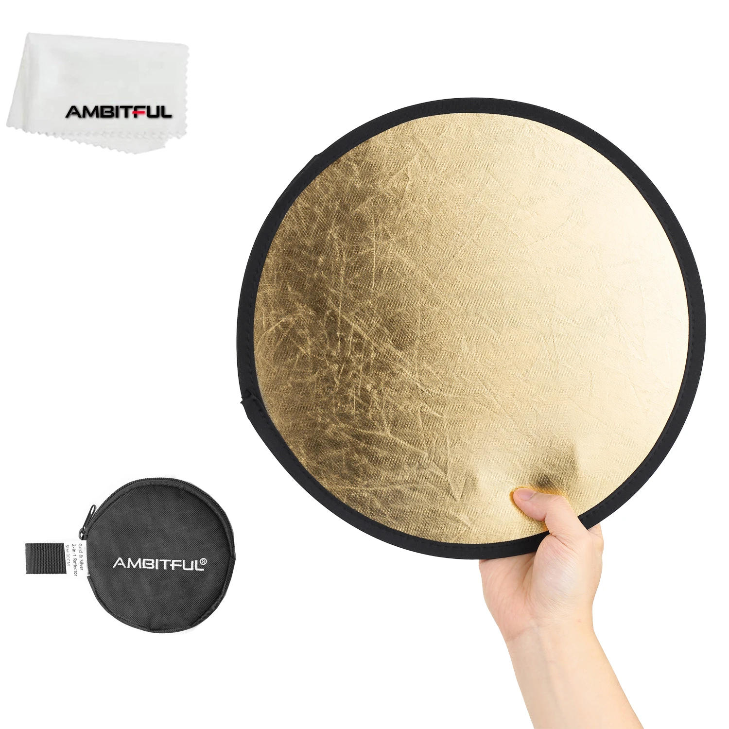 Круглый отражатель AMBITFUL для уличной и внутренней съемки, 2 в 1, золотистый, серебристый, белый, 30 см