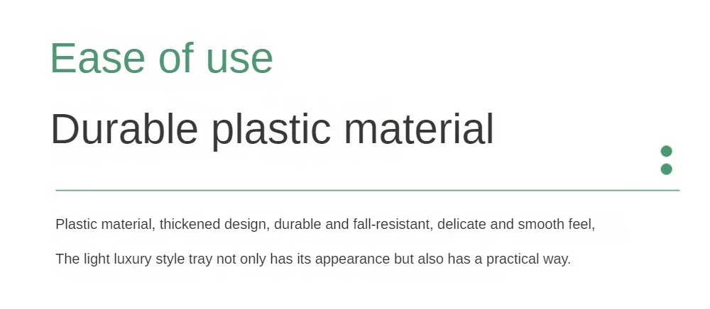 1. Спокойствие в использовании: прочный пластик, пластик, утолщенный дизайн, прочный и более устойчивый к падению, нежное и гладкое ощущение руки, легкий роскошный поднос, имеет не только цветовую ценность, но и практичный способ.