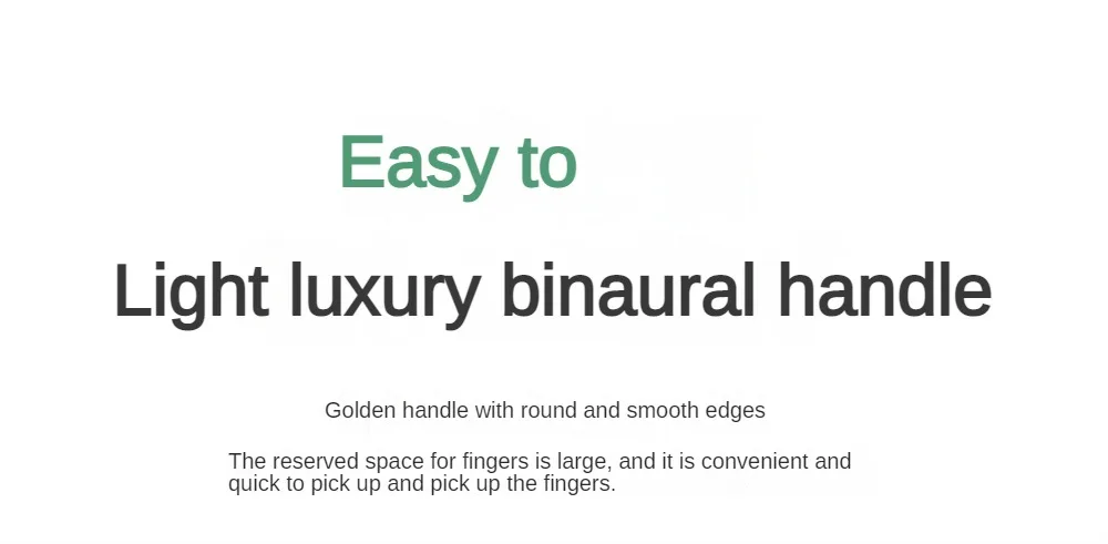 3. Легко носить с собой: легкие и роскошные бинауральные ручки, золотые ручки, круглые и гладкие края, большое зарезервированное пространство для пальцев, удобно и быстро носить на конце.