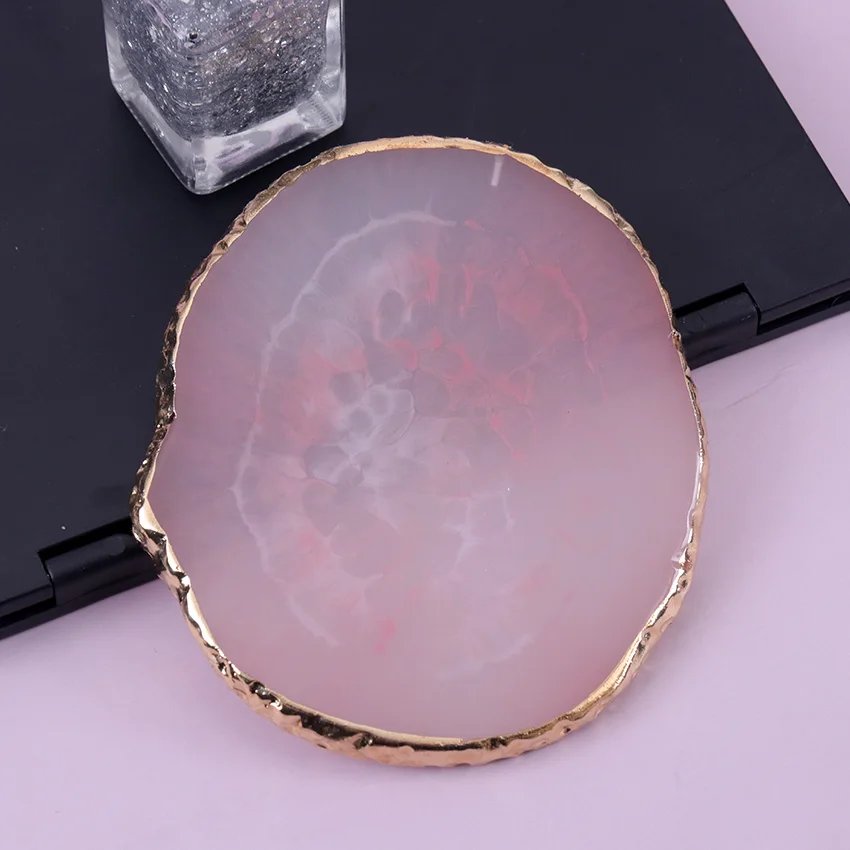 Made of resin material, imitate Natural agate gemstones, with golden edge covering, round shape and elegant vibrant color, looked vivid like real agate ,but more wear –resistant and broken resistant.
