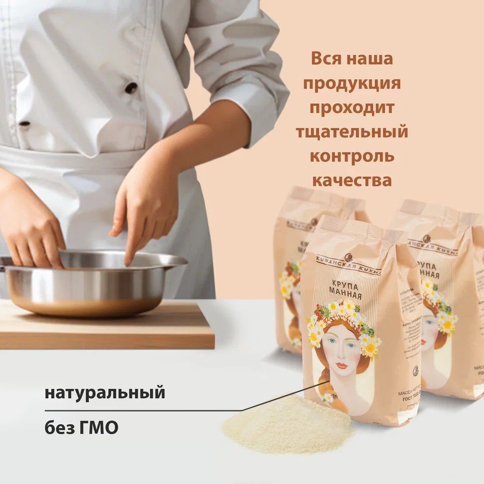 Описание: Манная крупа марки "М" от бренда "Кубанская кухня" представляет собой дробленые пшеничные зернышки с размером крупинок 0,75 миллиметра. Из крупы в основном готовят очень вкусную и питательную кашу, которая придает силы. Это связано с тем, что в блюде содержится растительный белок. Особенно каша из манной крупы будет полезна больным людям, перенесшим операцию. Кроме того, на основе манки делается очень много разнообразных блюд. Поэтому манную крупу можно назвать универсальным продуктом. Ее также добавляют в первые и вторые блюда, выпечку и десерты. Внимание, покупатели, в связи с ребрендингом, цвет и рисунок упаковки может отличаться от представленного на фото. Вкусовые качества продукта остались прежними.