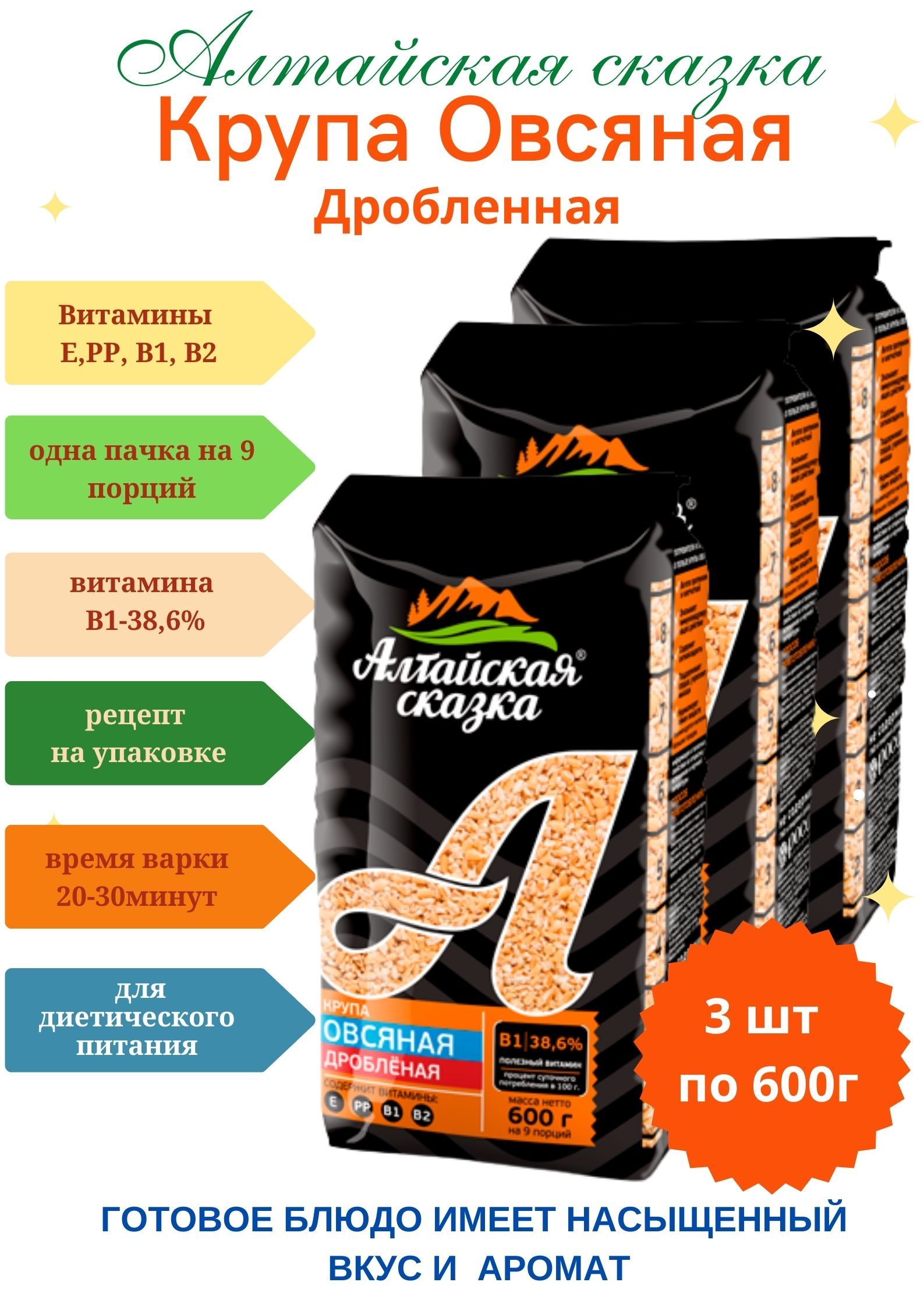 Описание: Овсяная крупа дробленая Алтайская сказка кладезь полезных веществ и витаминов именно поэтому её стоит купить и попробовать сварить кашу по всем правилам. Овес богат углеводами, белками, жирами, он содержит много фосфора и магния, калия и железа, микро и макроэлементов, витамины группы В. А также нерастворимых пищевых волокон, восстанавливающих микрофлору кишечника и действующих как своеобразный скраб для желудка, выводя при этом из организма все шлаки. Поэтому диетологи так любят этот продукт. .Цельные овсяные зерна, подвергнутые тепловой обработке, содержат гораздо больше полезных веществ, чем расплющенные хлопья с нарушенной зерновой оболочкой. Употребление овсяной крупы уменьшает уровень холестерина, служит профилактикой сердечно сосудистых заболеваний и диабета, повышает иммунитет, избавляет организм от шлаков, регулирует жировой обмен. Употреблять овсяную крупу очень важно для людей с диабетом и с лишним весом.