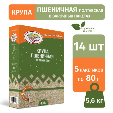 Крупа пшеничная Полтавская "Кубанская кухня" в пакетах для варки 400г (5пак.*80 г) /14шт для каши и гарниров Полтавка