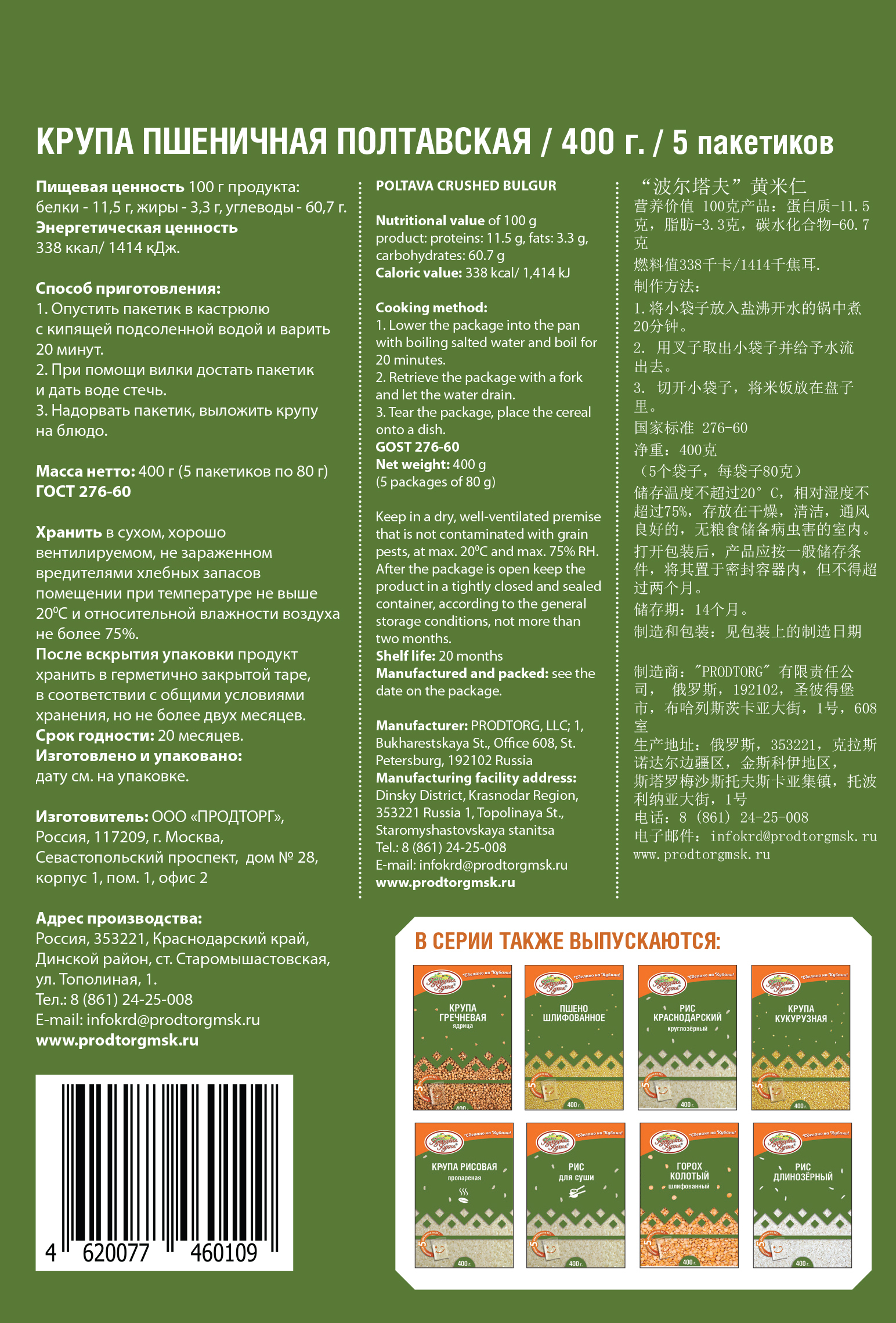 Описание: Пшеничная крупа от бренда "Кубанская кухня" обладает богатым составом и приятными вкусовыми качествами, а к тому же еще и невероятной пользой для нашего здоровья. Рекомендуется внести это блюдо в рацион тем, кто мечтает похудеть. Она отлично впишется в постное и вегетарианское меню. Продукт богат углеводами (не только крахмалом), белками и незаменимыми аминокислотами. В составе пшеничной крупы содержится много витаминов, в том числе В1, В2, В6, С, Е, РР и F, а также минералы — фосфор, калий, йод, магний, кальций, марганец и другие. Есть в этой крупе и такие полезные вещества, как холин, ниацин, биотин, каротин и фолацин. Регулярное употребление пшеничной каши помогает улучшить состояние кожи, волос и ногтей, и в этом не последнюю роль играет клетчатка, благодаря чему еще нормализуется деятельность кишечника. Каша из пшеницы (в чистом виде без добавления сахара, соли и т.д.) может быть добавлена в детский рацион, начиная с половины чайной ложки, постепенно увеличивая объем. Полтавка — отличный ингредиент для супов, вторых блюд и рассыпчатых гарниров, запеканок и пудингов. Эта крупа прекрасно сочетается с мясом, печенью, рыбой, овощами, грибами.