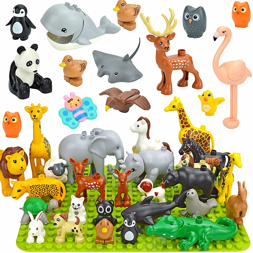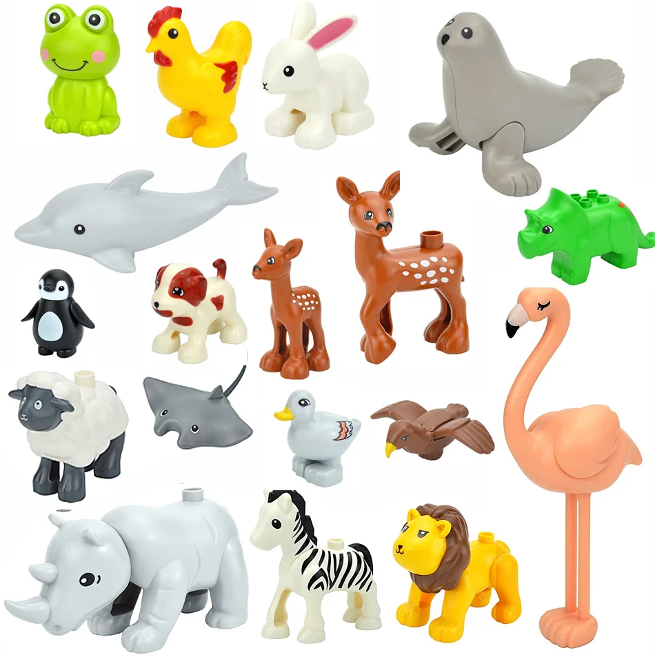 Крупные блоки Duploes большого размера для сборки животных, ферма, зоопарк, дельфин, кролик, Пламенный олень, Лев, лягушка, тигр, жираф, игрушки