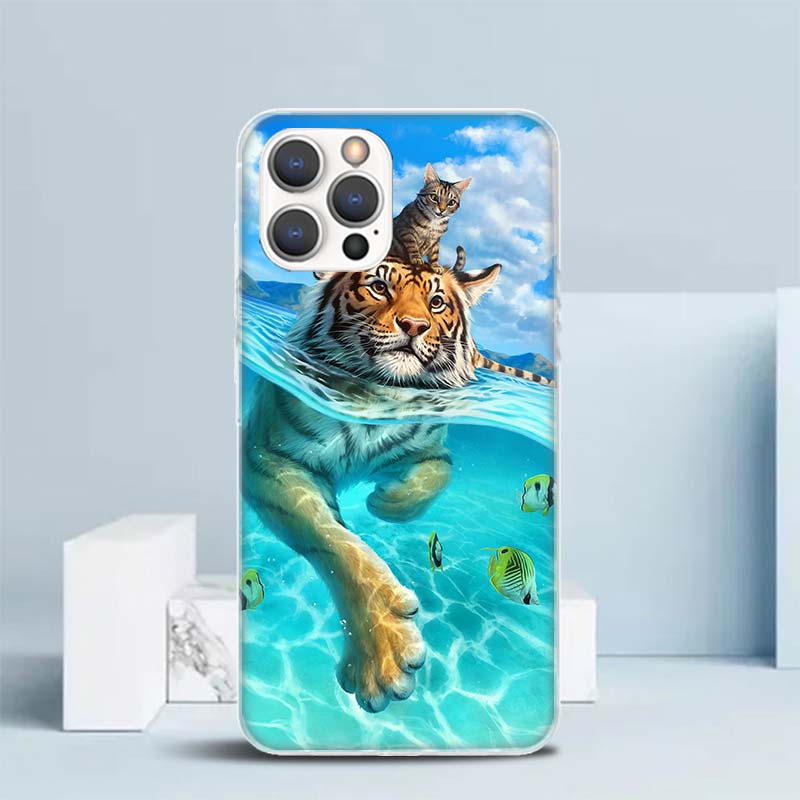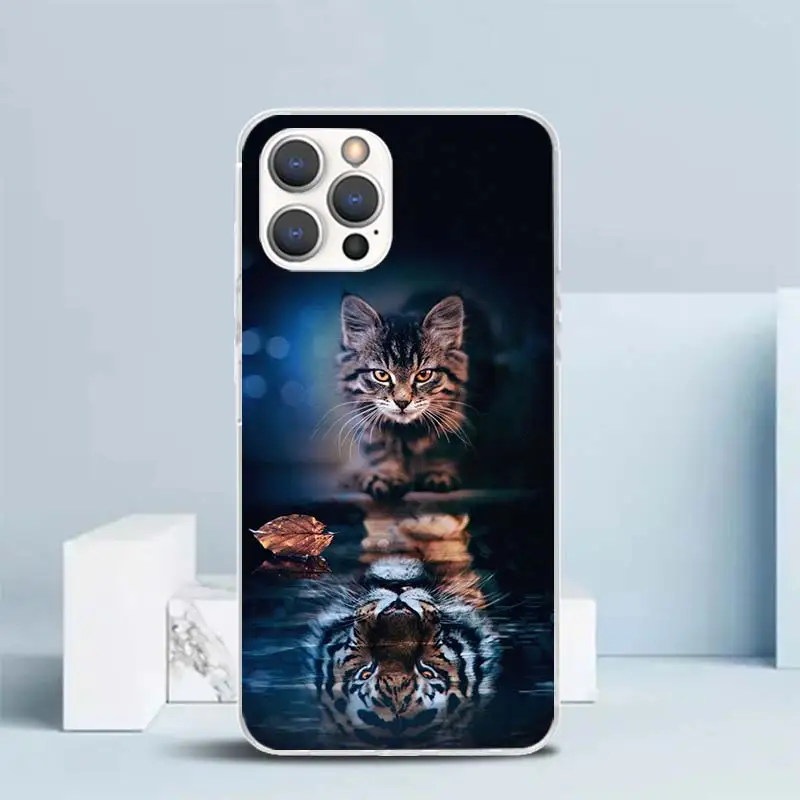 Прохладный мягкий чехол с животными, большой кот, тигр для iPhone 14 13 12 Mini 11 Pro Max, чехол для телефона с принтом X XS XR 7 Plus 8 + 6 6S 5 SE, узор C