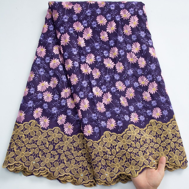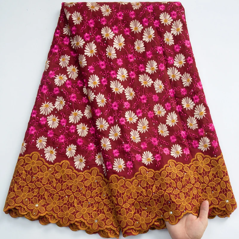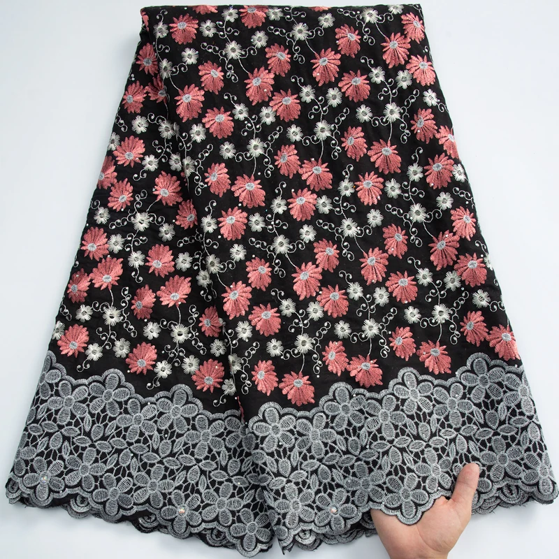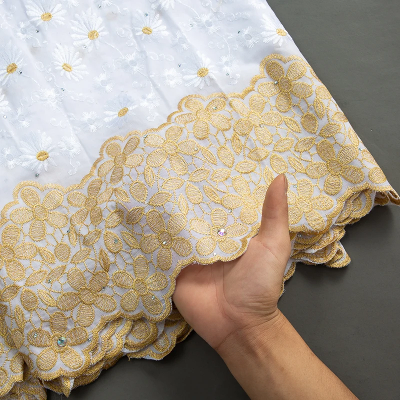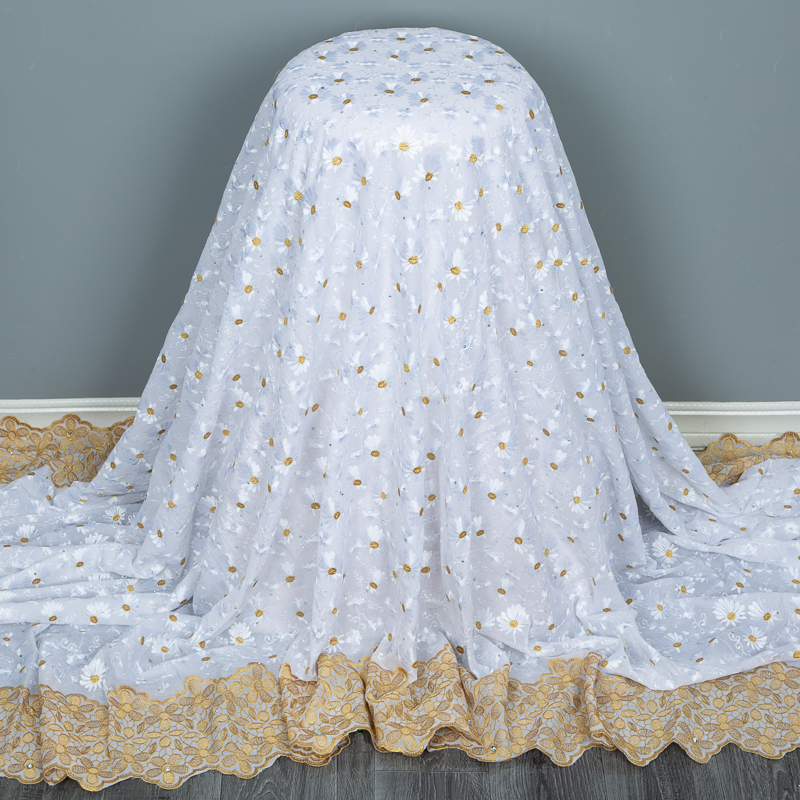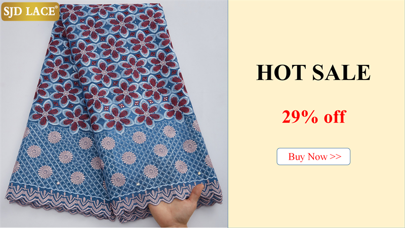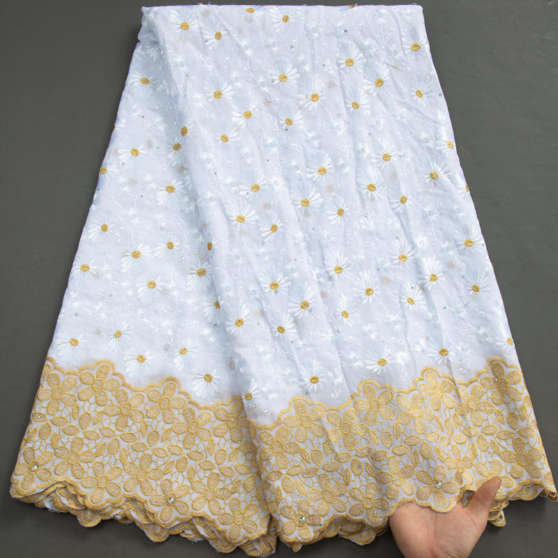 Кружевная Африканская Хлопковая кружевная ткань SJD, 2023, Высококачественная швейцарская хлопковая кружевная ткань с камнями для женских свадебных платьев, A3376