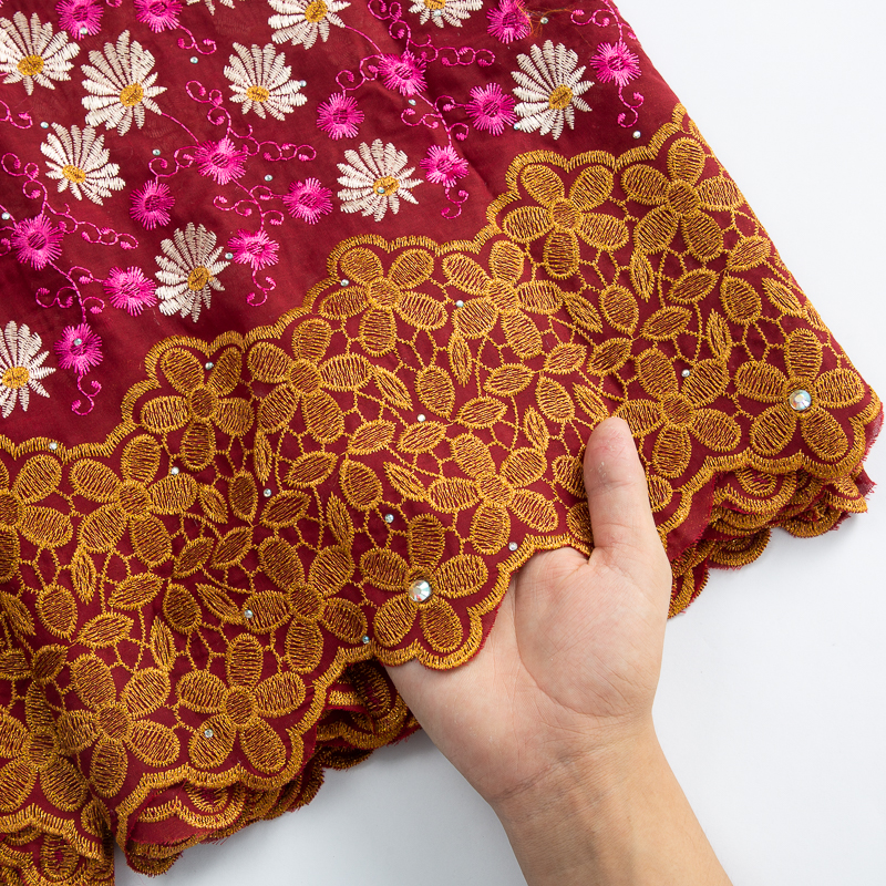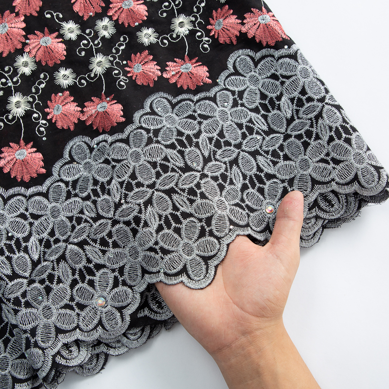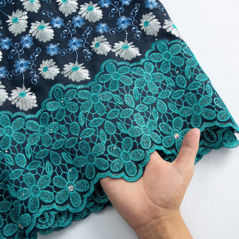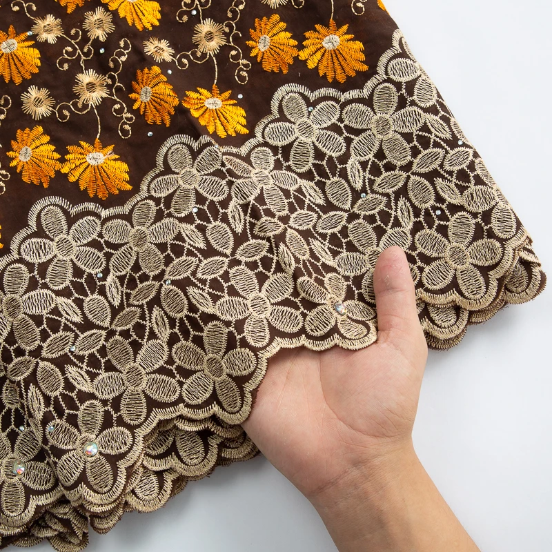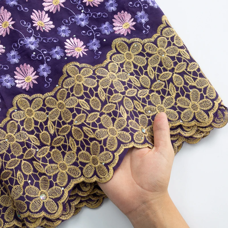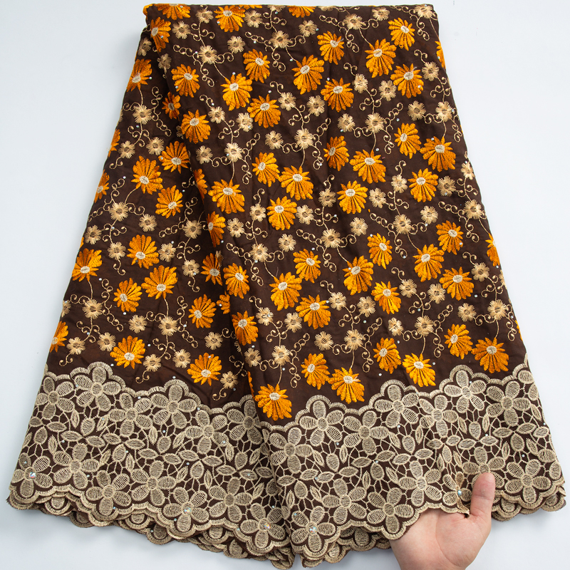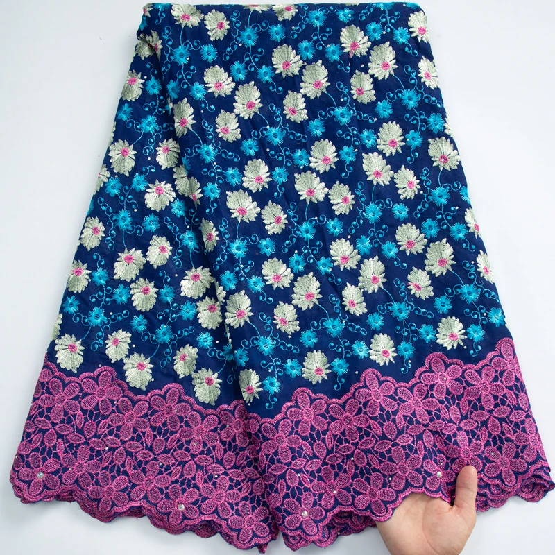 Кружевная Африканская Хлопковая кружевная ткань SJD, 2023, Высококачественная швейцарская хлопковая кружевная ткань с камнями для женских свадебных платьев, A3376