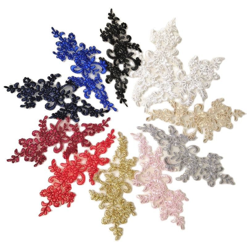 Product Name: 1 пара вышитая Цветочная Кружевная аппликация Diy мотив платье украшения