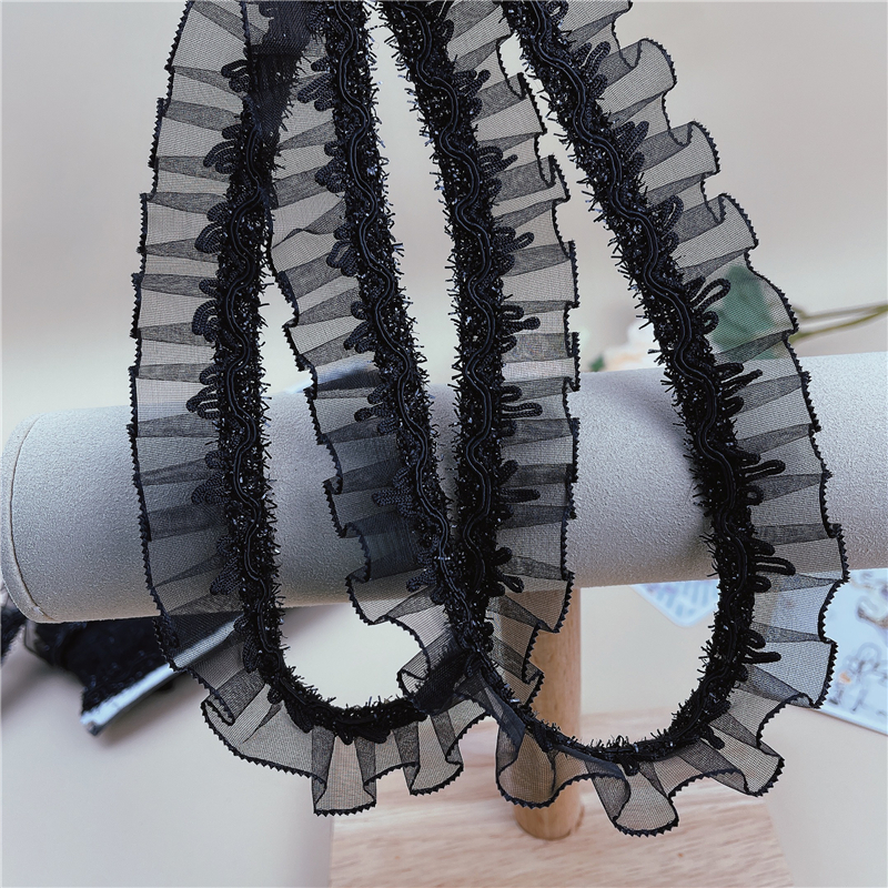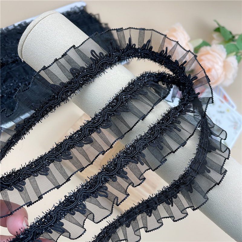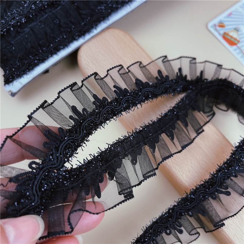 Название продукта: высококачественная черная блестящая плиссированная кружевная лента
