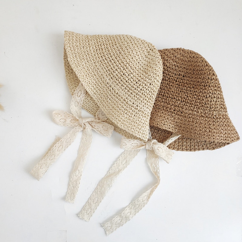 Кружевная детская шапка, летняя Соломенная Шапка для маленьких девочек, модная кружевная пляжная детская Панама с бантом, шапки и головные уборы для принцесс, детские шапки