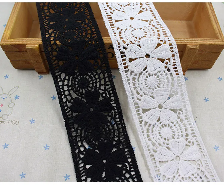 Кружевная лента из хлопка, 4,8 см, шириной, белого, черного цвета, с вышивкой, для платья, гипюровая аппликация, отделка, для рукоделия, шторы, юбки, швейный Декор
