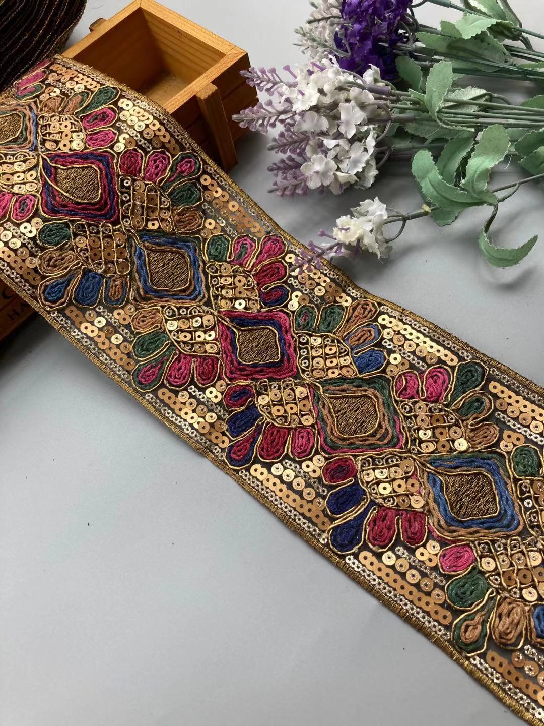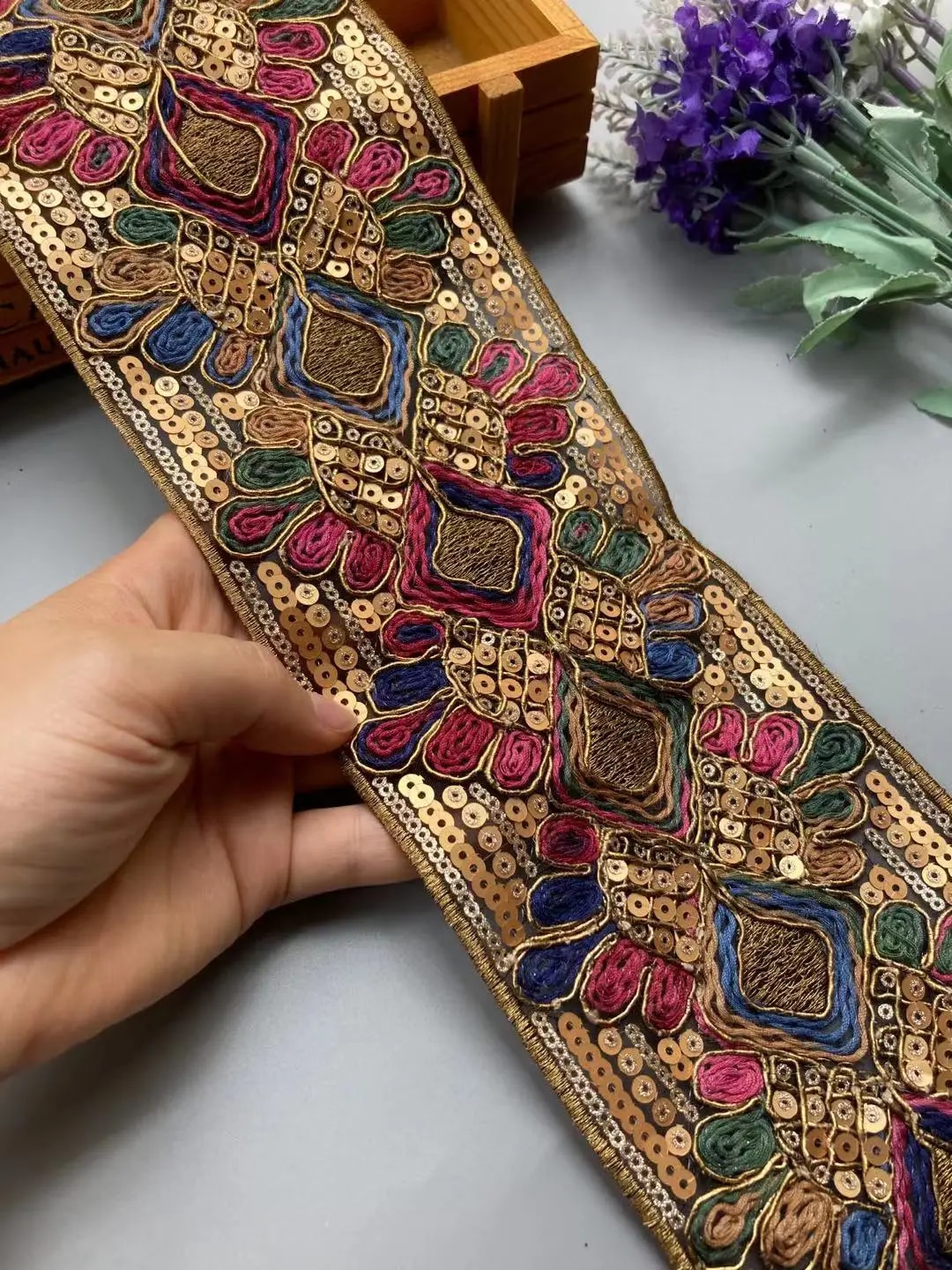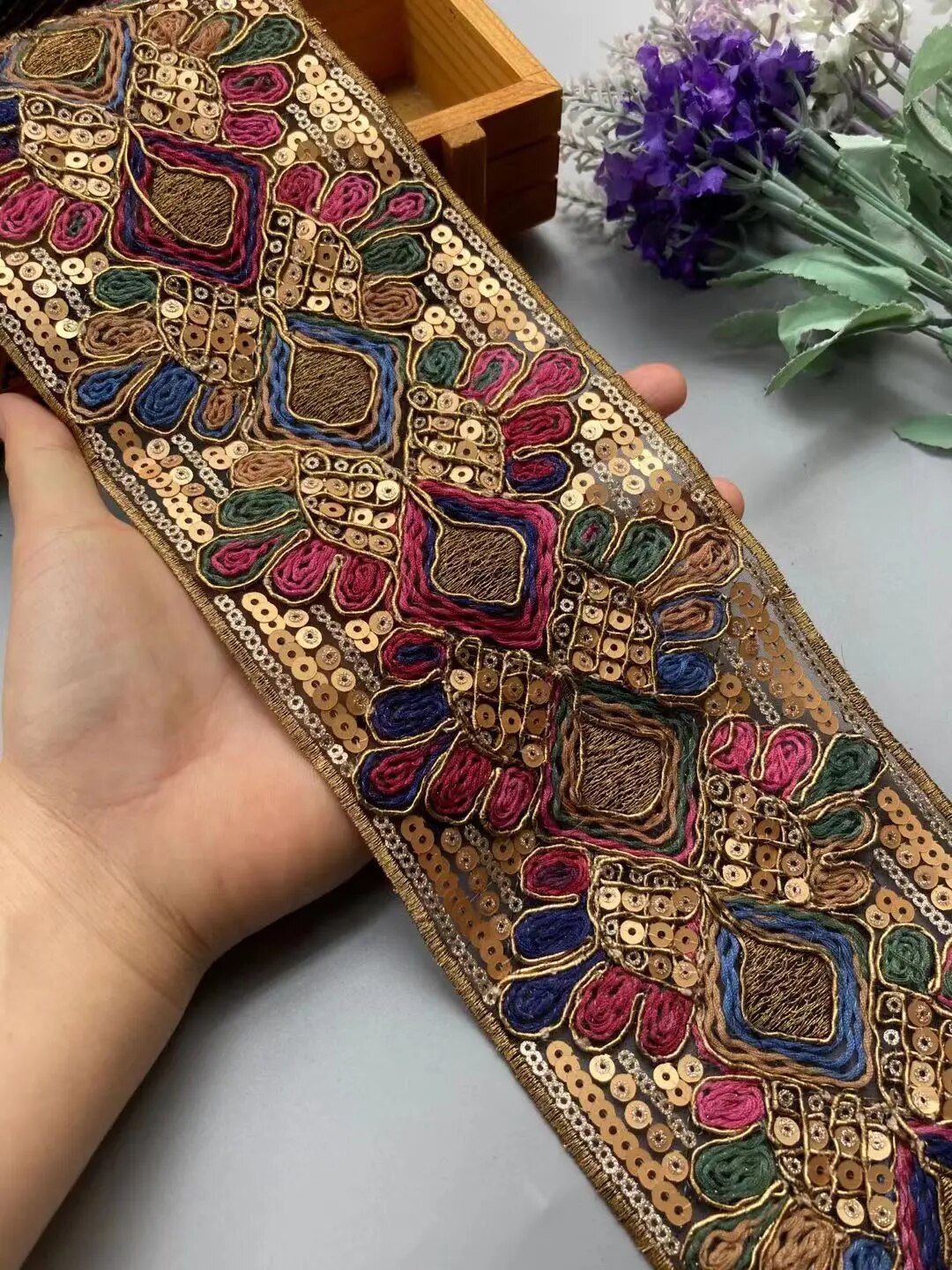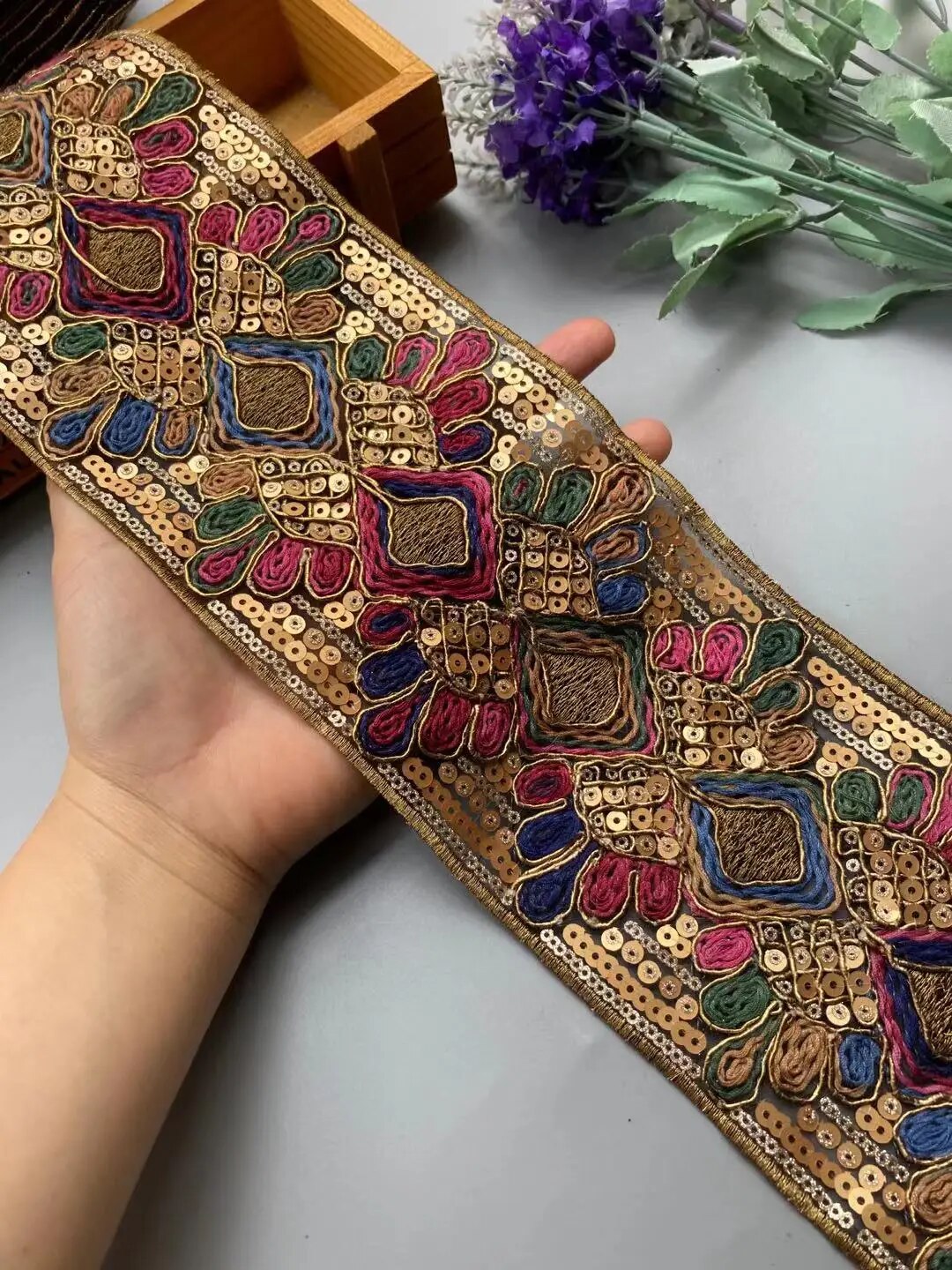 Кружевная лента с блестками, 105 мм, 2 ярда