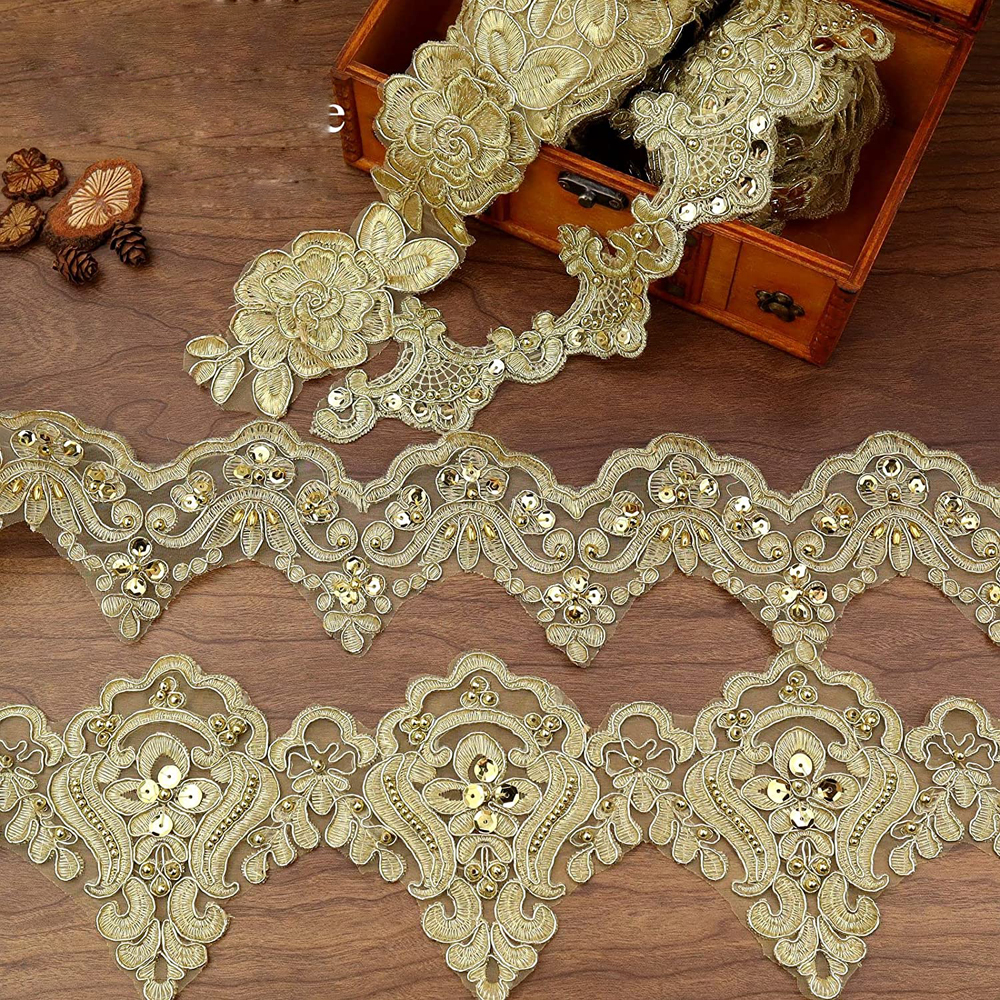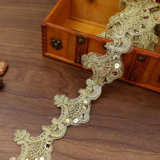 1 м Золотая расшитая Бисером кружевная отделка Лента винтажная Сделай Сам крафт окантовка кружевная вышивка