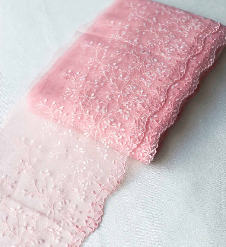 Кружевная отделка для одежды, 1 метр, Ширина 17 см, сетка, розовый цветочный узор, вышивка, мягкая