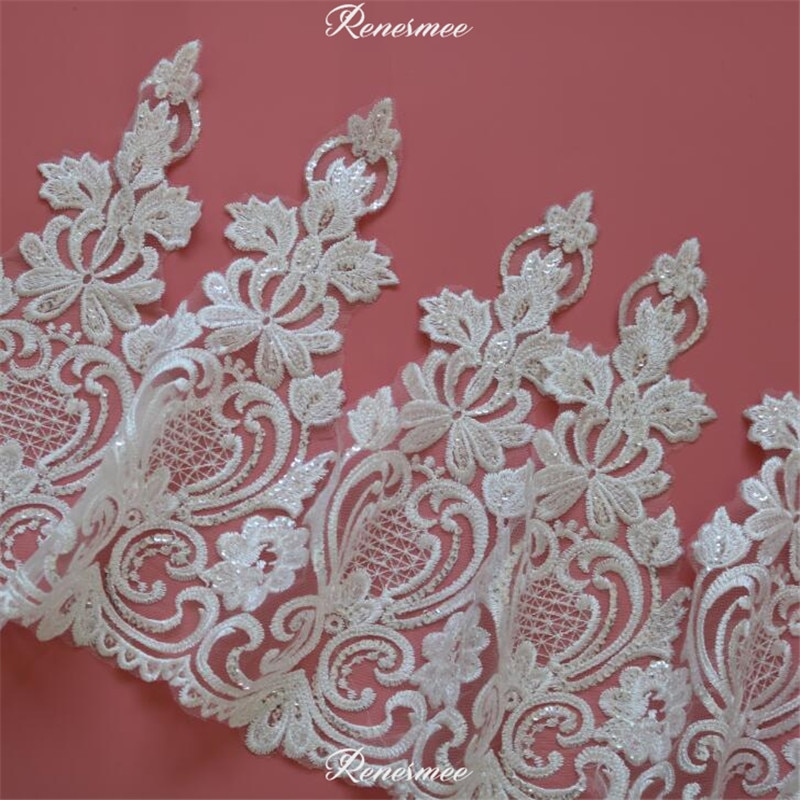 Кружевная отделка для шитья, с блестками, цвета слоновой кости, 33 см, SX216, 1 ярд