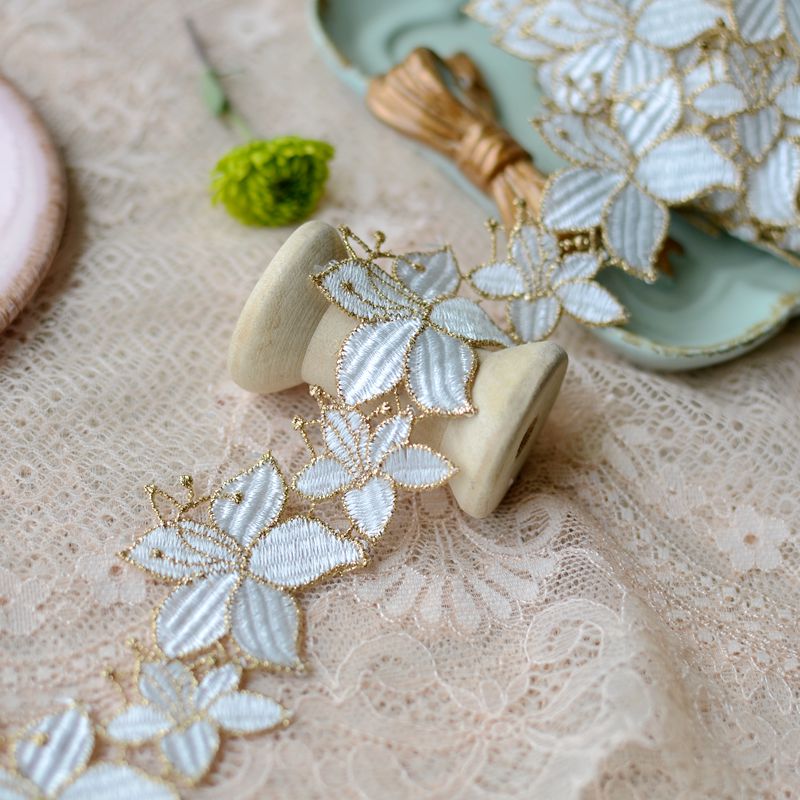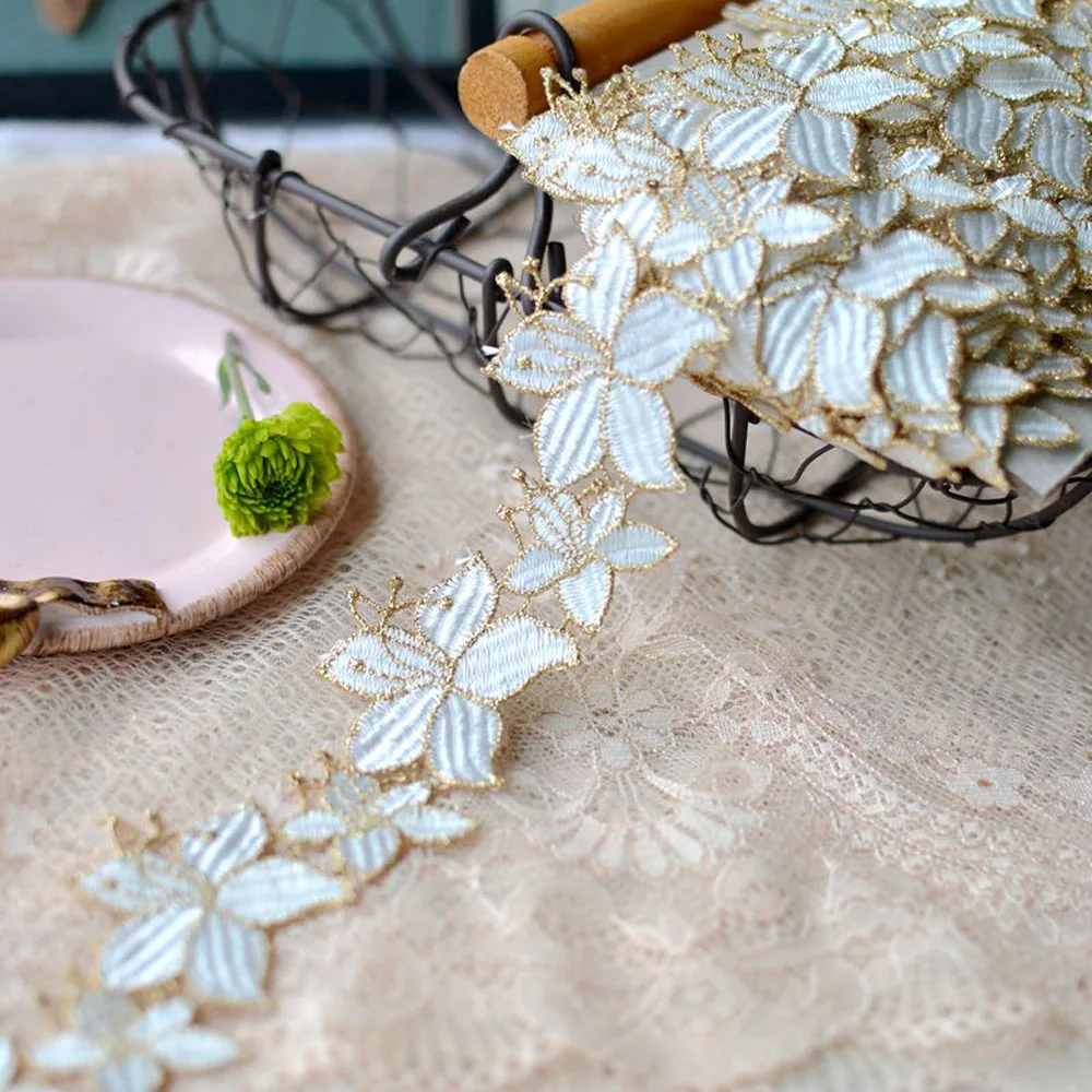 1 ярд золотой цветок кружевной отделкой ленты вышитые тесьма шитье ремесло французский африканский подарочная упаковка 4 см в ширину