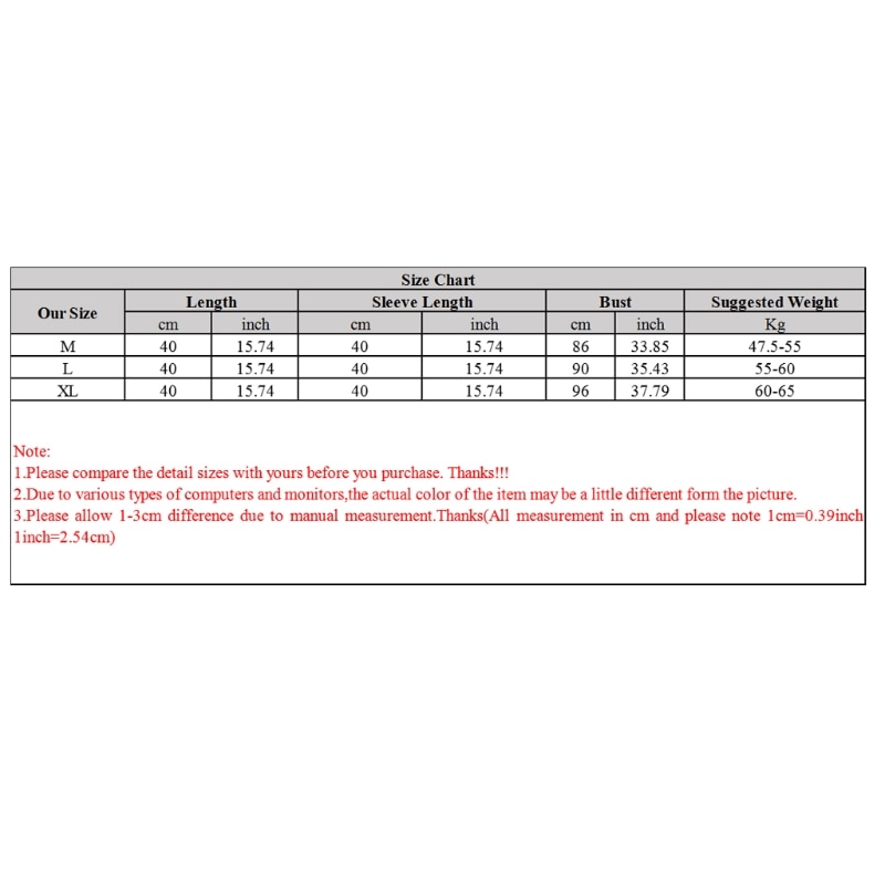 L: Длина: 40 для см/15,74 дюйма, длина рукава: 40 для см/15,74 дюйма, обхват груди: 90 для см/35,43 дюйма, рекомендуемый вес: 55-60 кг