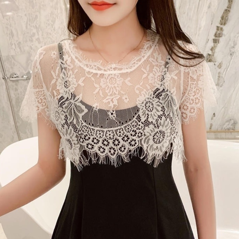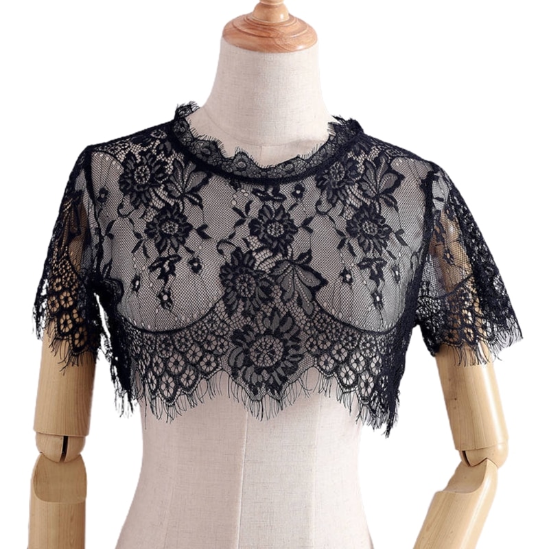 Кружевная Съемная блузка, накидка на рубашку, обложка на шею, воротник с рюшами, Поддельный Воротник, мини-накидка, кукольный воротник, чокер