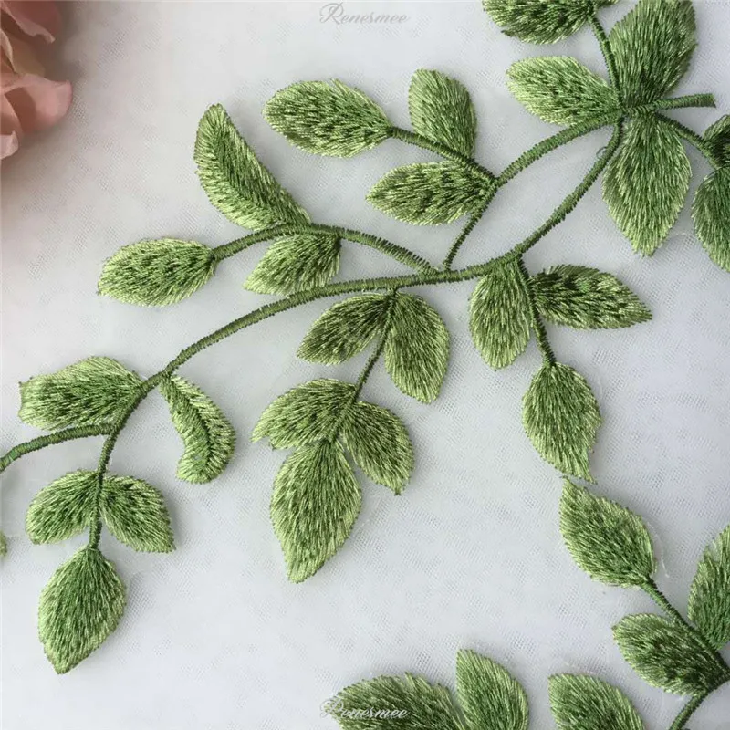 Кружевная ткань для рукоделия, 1 пара/2 шт., 19x12 см, с зелеными листьями, Venise кружевной отделкой